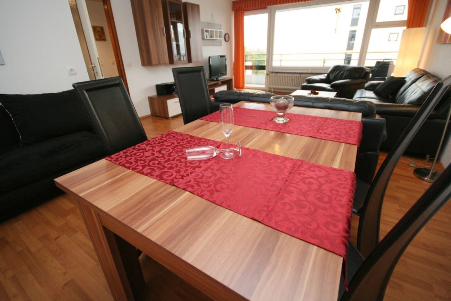 Der Balkon lädt bei dem Seeblick zum entspannen ein. Die Wohnung ist für max. 4 Personen ausgestattet. Das Wohnzimmer ist mit einer Ledergarnitur, einen Flach-TV, ein Radio mit Stereoanlage, einer separaten Schlafcouch für 2 Personen sowie einer Essecke mit 4 Stühlen ausgestattet.