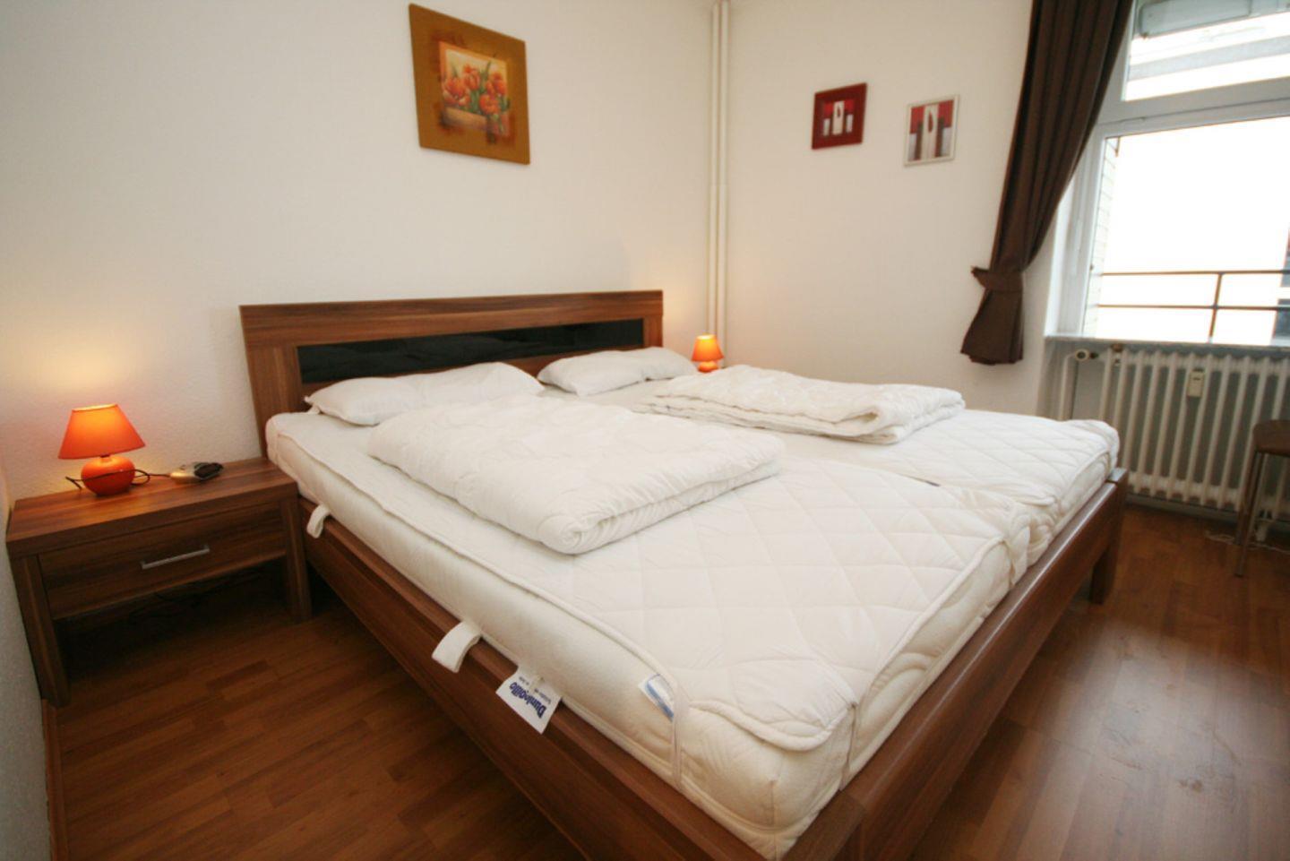 Im Schlafzimmer befindet sich ein Doppelbett, den dazugehörigen Kleiderschrank befindet sich im Flur. Auch von hier können Sie das Meer sehen. Wachen Sie also auf und schauen Sie gleich aufs Meer, schöner kann ein Tag nicht beginnen.