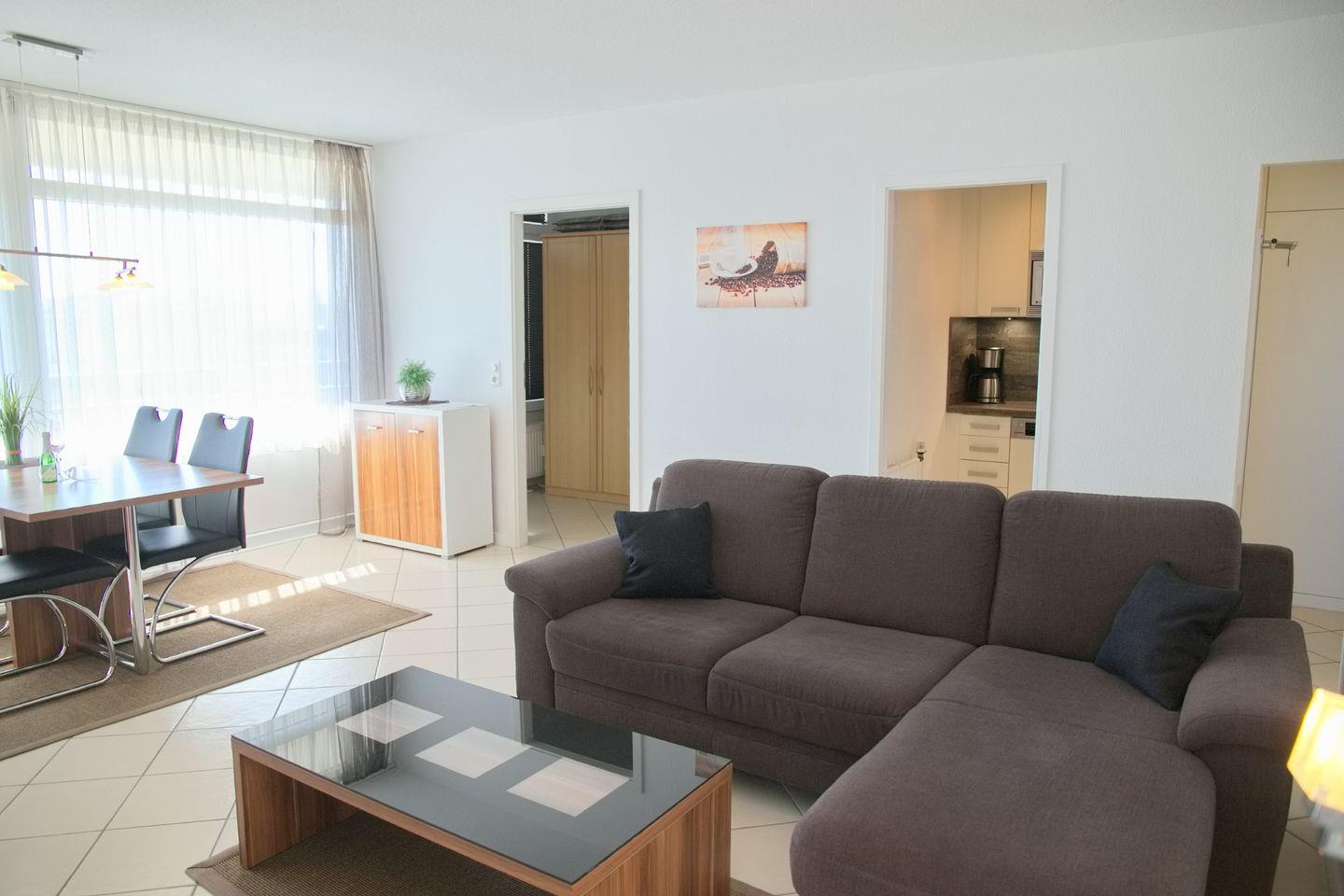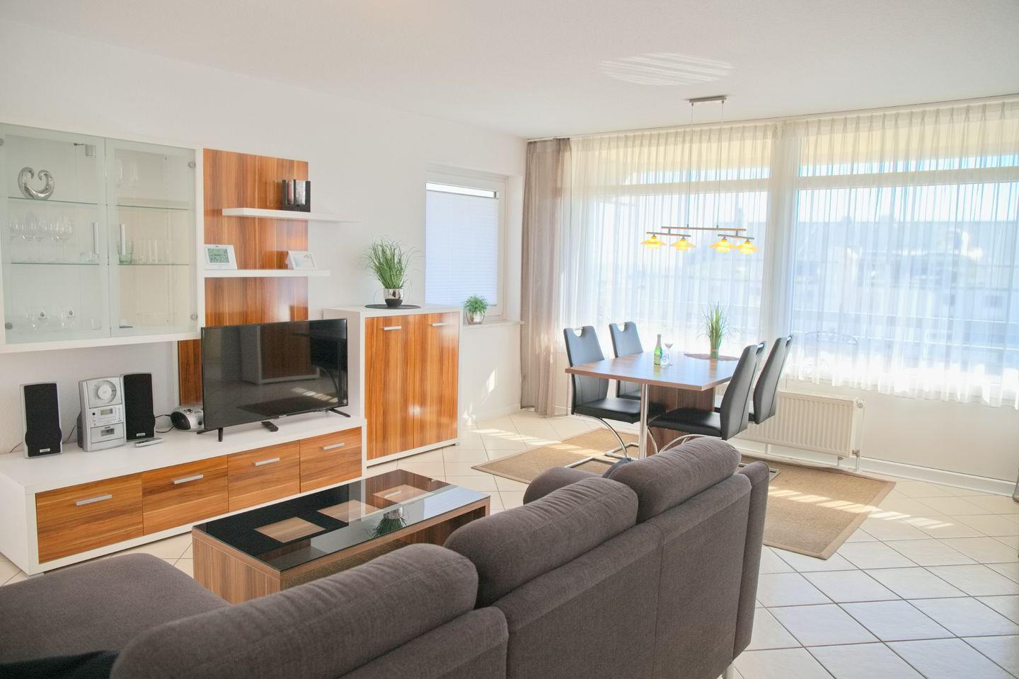 Sehr schöne 3 Zimmer Ferienwohnung mit kostenlosen WLAN und Südost-Balkon befindet sich direkt an der Promenade.