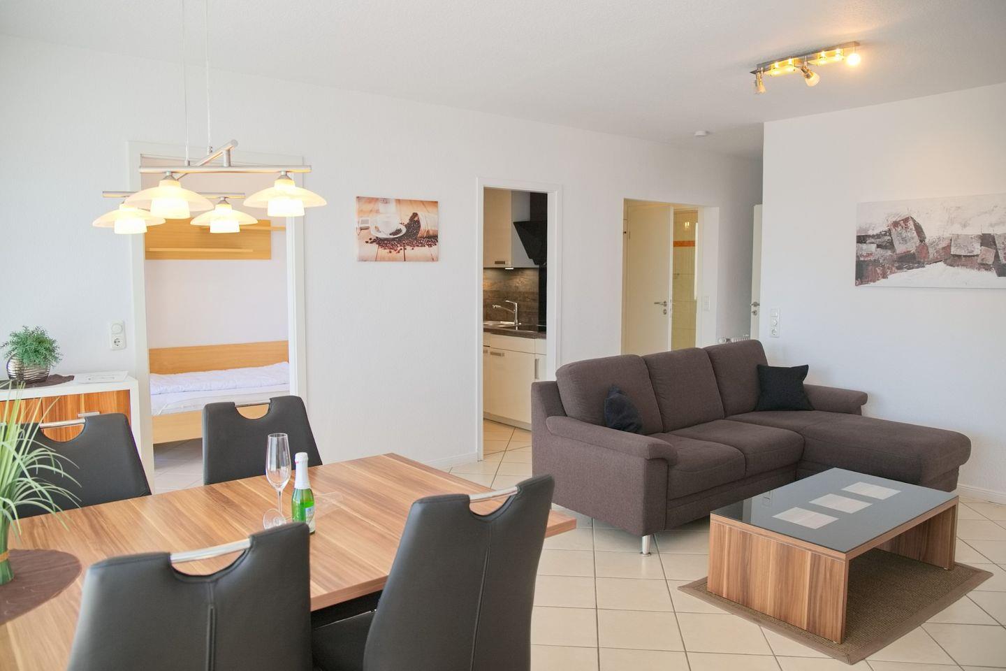 Die Wohnung erstreckt sich über 53 m² und ist aufgeteilt in zwei Schlafzimmer, ein modernes Bad sowie einen gemütlichen Wohnbereich. Das Appartement ist als Nichtraucherwohnung konzipiert und allergikergeeignet, sodass Sie sich hier rundum wohlfühlen können. Zudem verfügen Sie über WLAN, damit Sie stets online bleiben können – ideal für Geschäftsreisende oder Urlauber, die auch im Urlaub nicht auf Internetanbindung verzichten möchten.