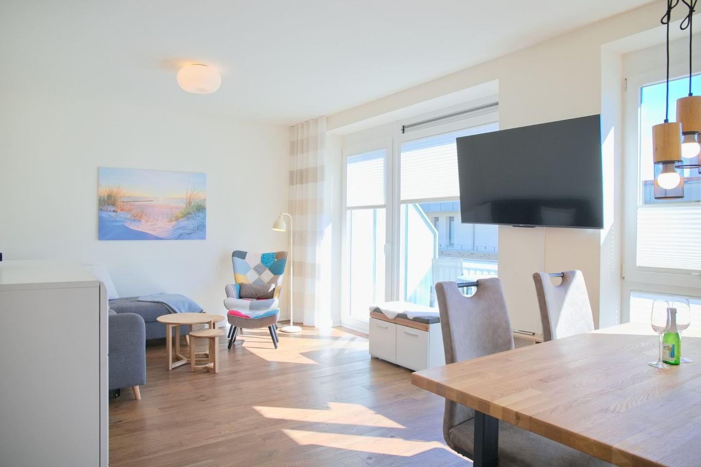 Die Wohnung besticht durch ein gemütliches Wohnzimmer, das mit einer bequemen Couchgarnitur und einem Flachbild-TV ausgestattet ist, und lädt zu entspannten Abenden ein. Der angrenzende Essbereich bietet Platz für vier Personen und eignet sich perfekt für gemeinsame Mahlzeiten.
