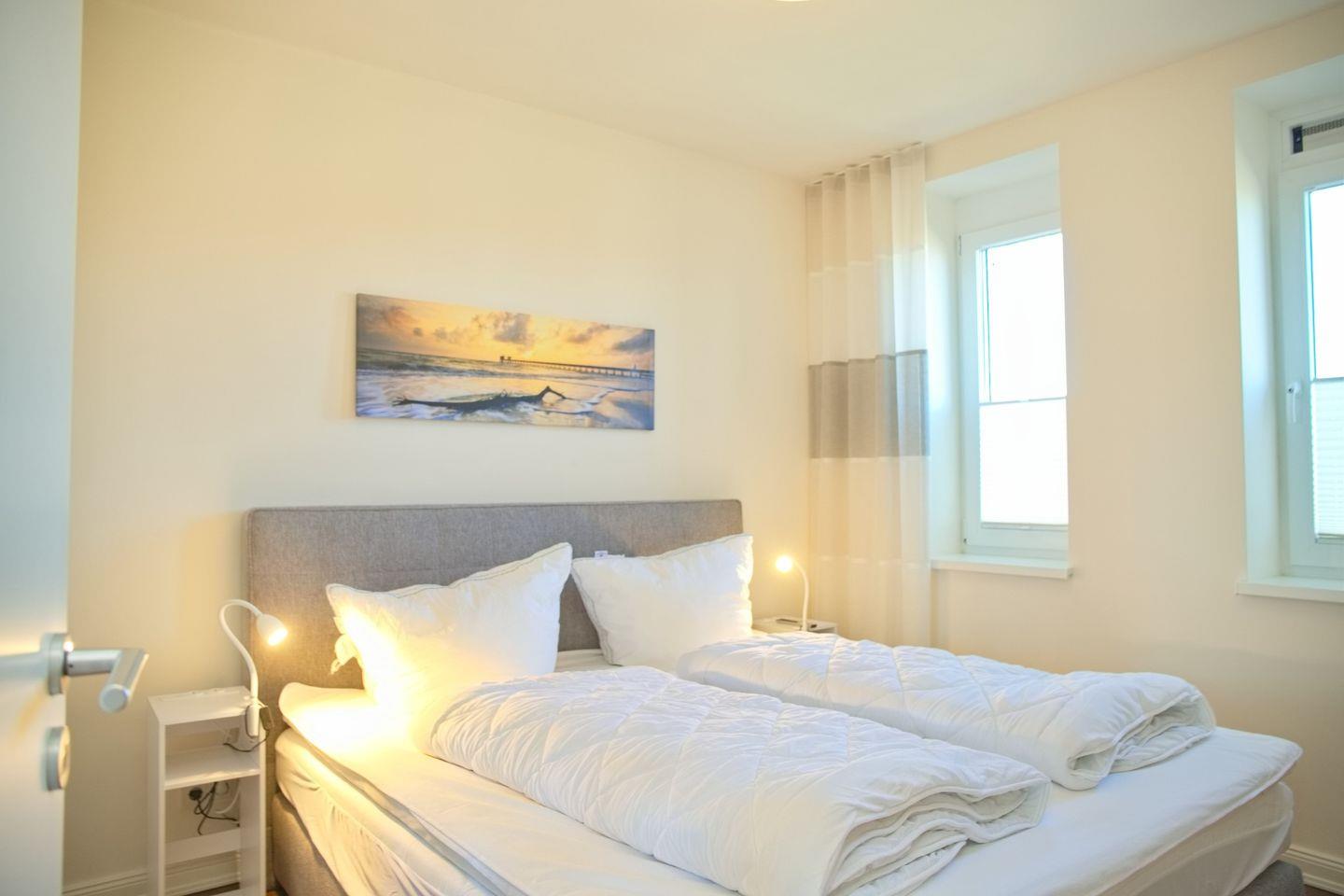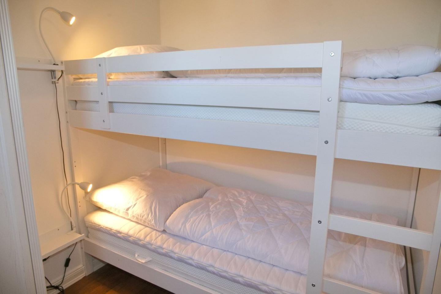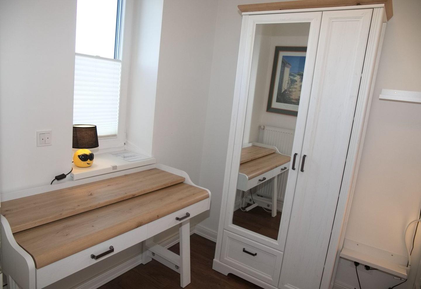 Das Schlafzimmer verfügt über ein komfortables Doppelbett (Liegefläche 180x200 cm) mit durchgehendem Topper sowie einen geräumigen Kleiderschrank und einem TV. Im Kinderzimmer steht ein Etagenbett (2x90x200 cm), das auch für Erwachsene geeignet ist, zur Verfügung sowie ein Schreibtisch und ein Kleiderschrank. Ein Kinderreisebettchen kann bei Bedarf im Schlafzimmer zugestellt werden.