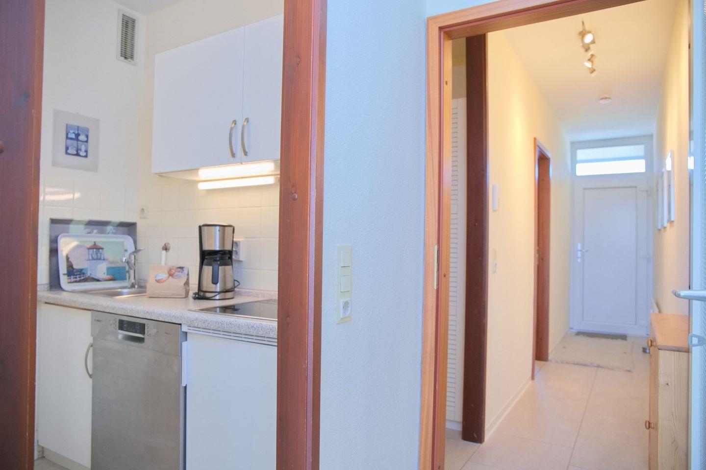 Die voll ausgestattete Küche lässt keine Wünsche offen – mit Ceranfeld, Kühlschrank, Kaffeemaschine, Wasserkocher, Toaster, Mikrowelle, Minibackofen und Geschirrspüler steht dir alles zur Verfügung, um dich auch im Urlaub bestens zu versorgen.
