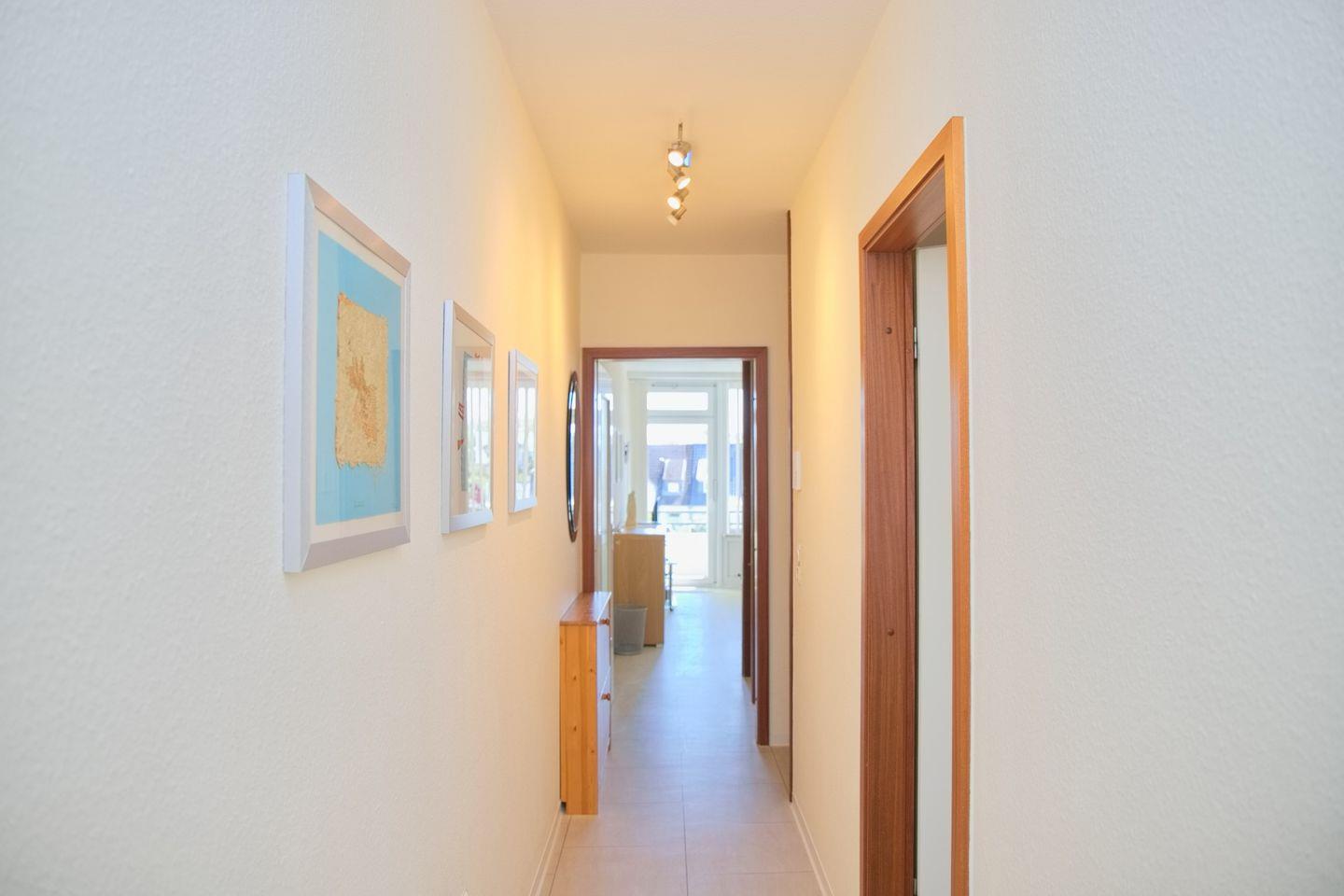 Dank der zentralen Lage der Wohnung erreichen Sie den Strand, die Promenade, Einkaufsmöglichkeiten und verschiedene Restaurants und Bäcker in wenigen Gehminuten.