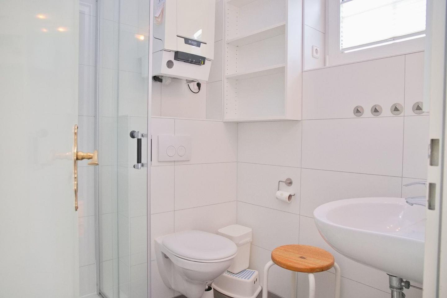 Im Erdgeschoss finden Sie das moderne Duschbad/ WC, eine Waschmaschine finden Sie im Abstellraum, das Wohnzimmer mit einer offenen Einbauküche getrennt durch einen Tresen und den Zugang zur möblierten Terrasse mit Garten (nicht eingezäunt).