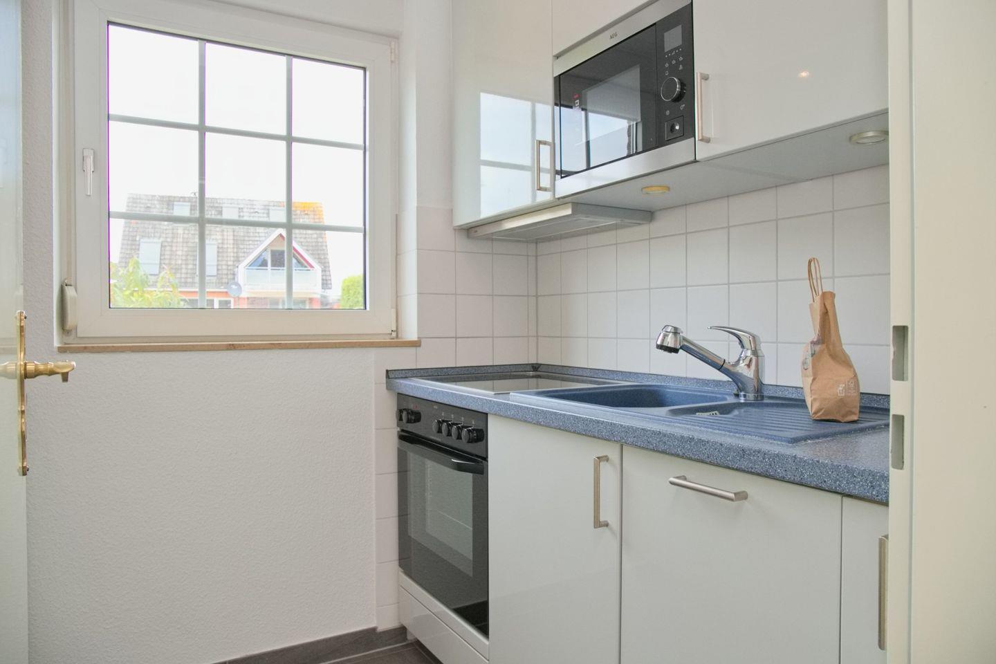 Platz. Die Einbauküche ist voll ausgestattet mit einem Cerankochfeld, einem