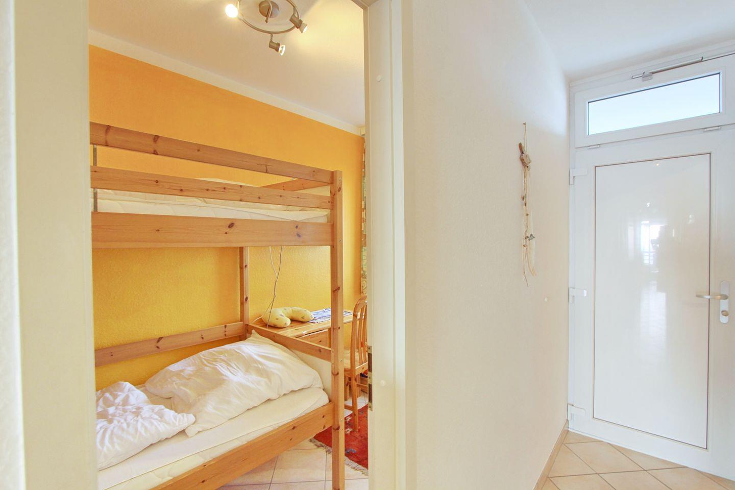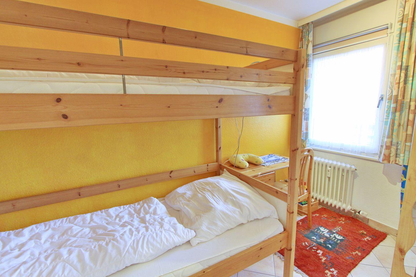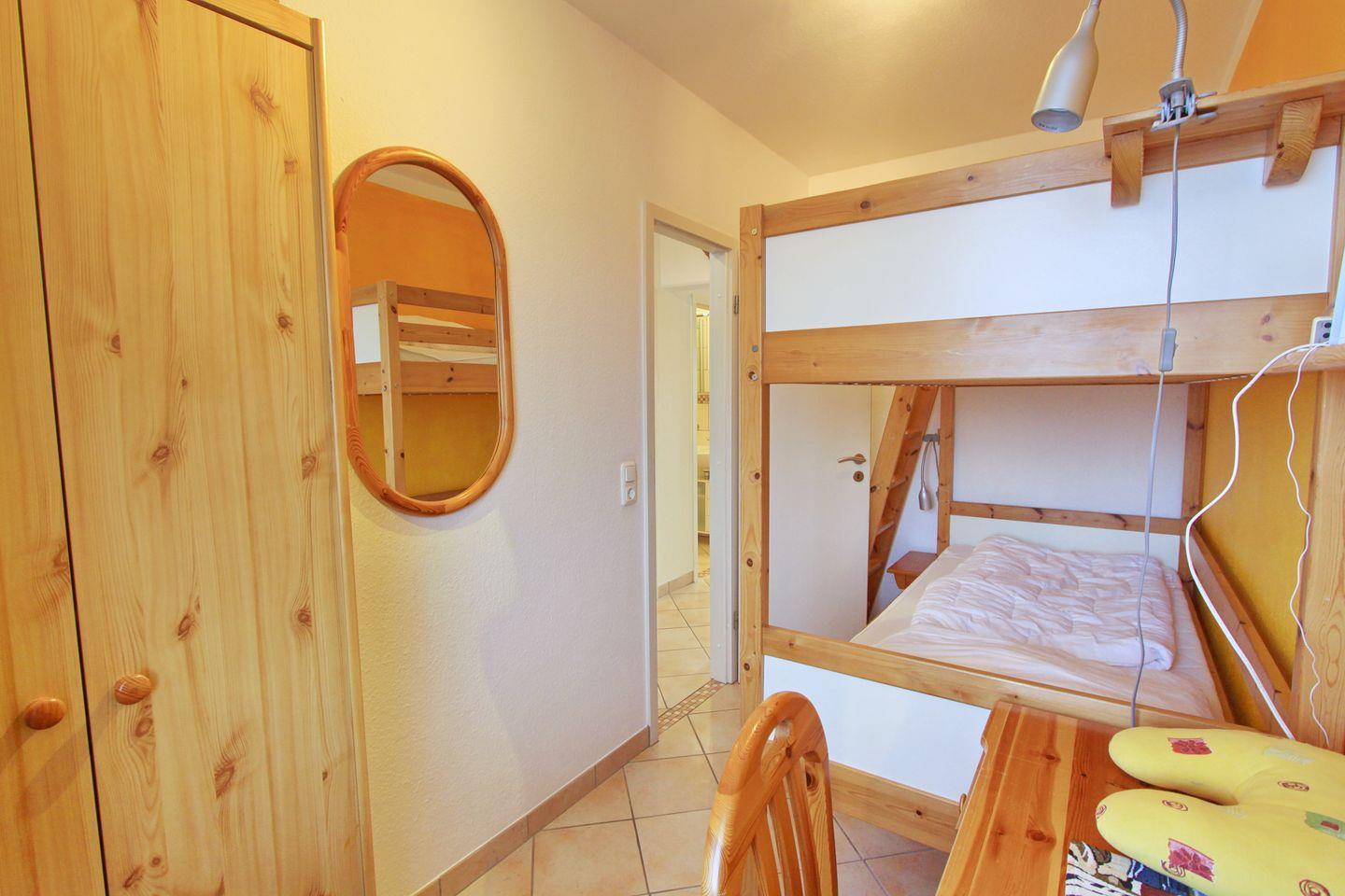 Gegenüber des Schlafzimmers finden Sie das Kinderzimmer mit Etagenbett (90x200 cm), Kleiderschrank und Radio mit CD Player.