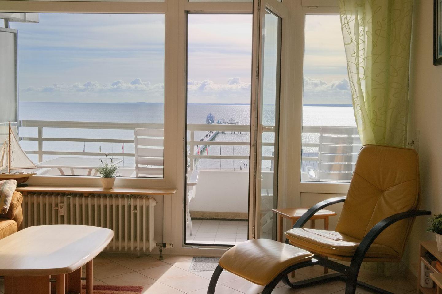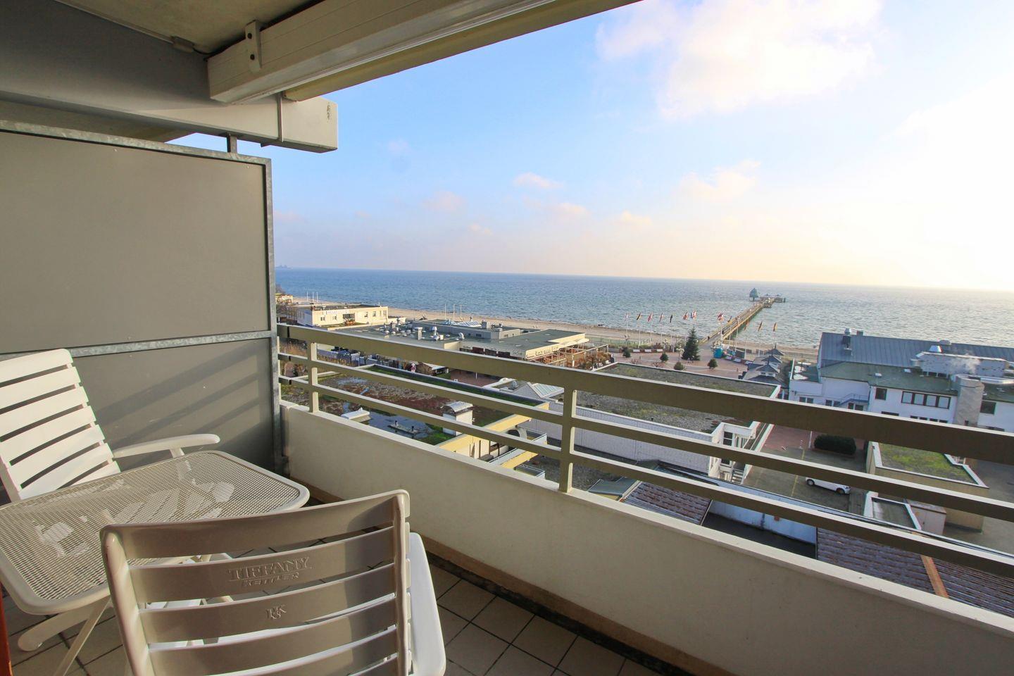Geschmackvolle helle Ferienwohnung direkt am Seebrückenvorplatz mit möblierten Südbalkon, Markise und traumhaften Blick auf die Ostsee.