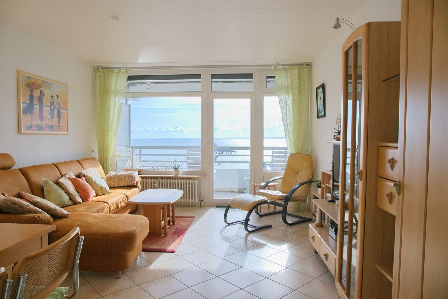 Sehr schöne drei Zimmer Ferienwohnung, ca. 54 qm, im 7. OG mit 100 % Seeblick in Südlage, direkt an der Promenade.
