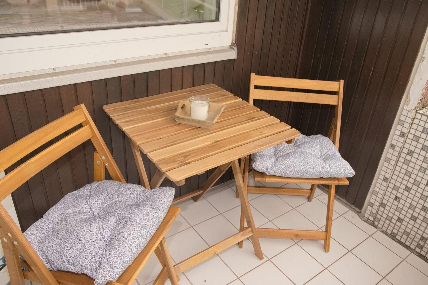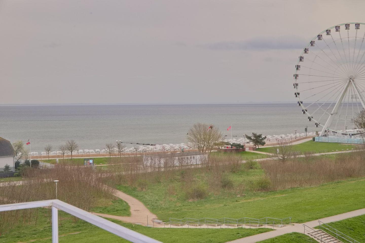 Sehr schöne 2 Zimmer Ferienwohnung mit möbliertem Süd-Balkon und Seeblick in Strandnähe. Direkt hinter dem Deich in der Nähe vom Hundestrand.