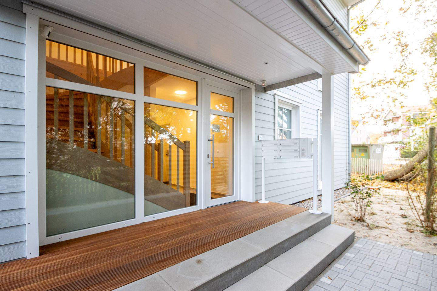 Bitte beachten Sie, dass kein Strandkorb und kein Fahrstuhl vorhanden sind. Für Fahrräder gibt es ausreichend Abstellmöglichkeiten im Fahrradständer draußen am Haus.