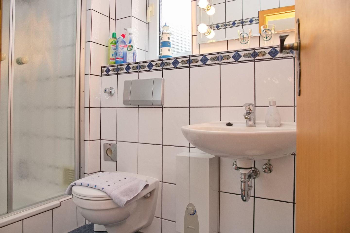 WC, Kosmetikspiegel, Fön und einen großen beleuchteten Spiegel. Diese