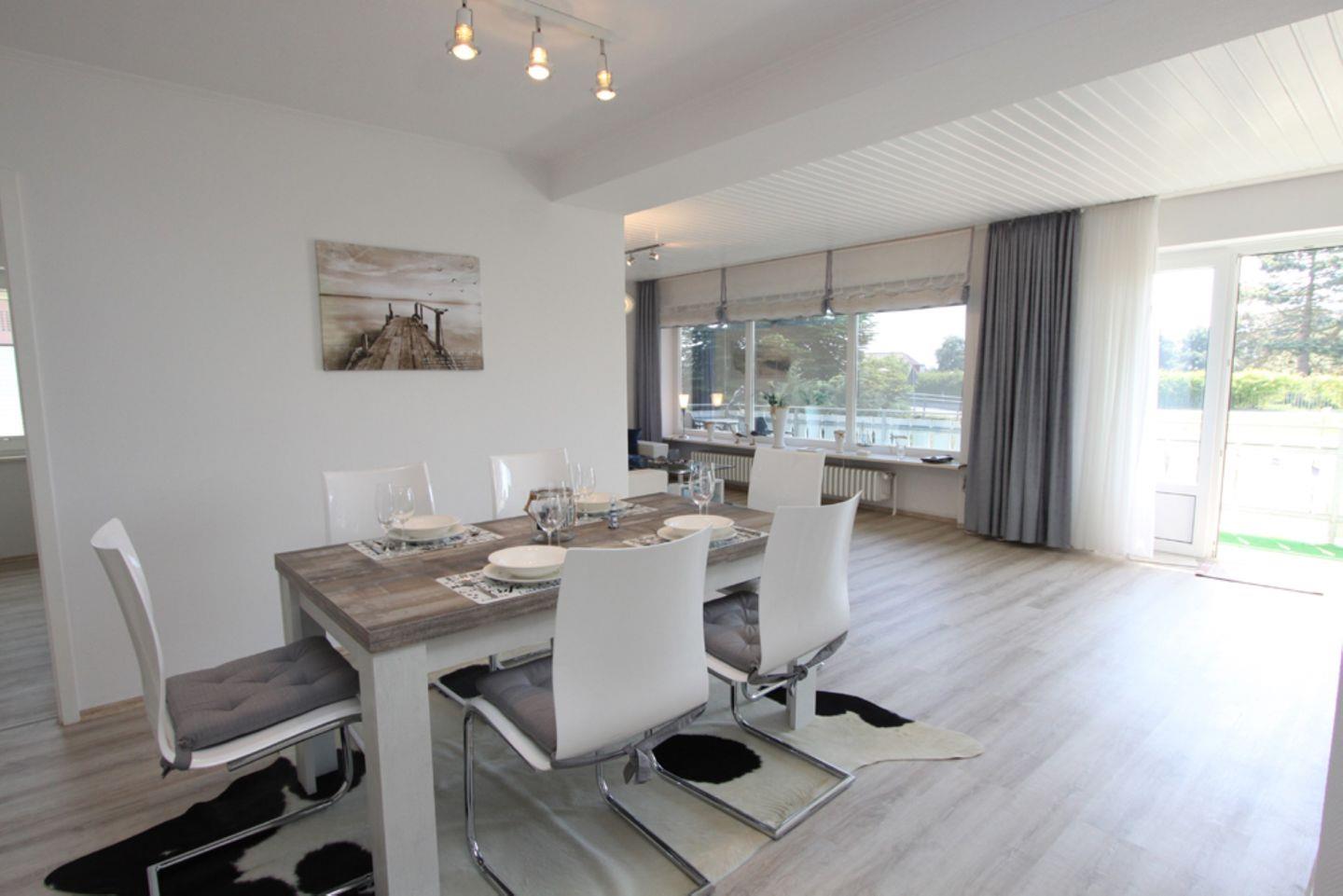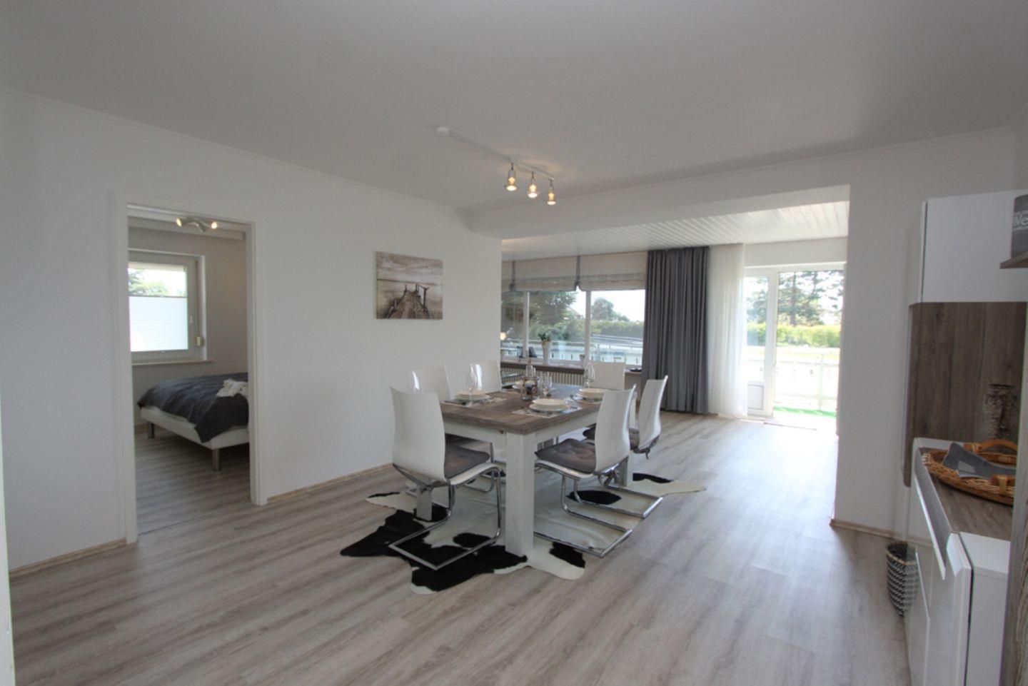 Diese moderne und sehr hochwertige 3 Zimmer Ferienwohnung in der ersten Etage lädt in seinem großzügigen Wohnzimmer mit integriertem Essbereich zum gemütlichen Verweilen und Entspannen ein.