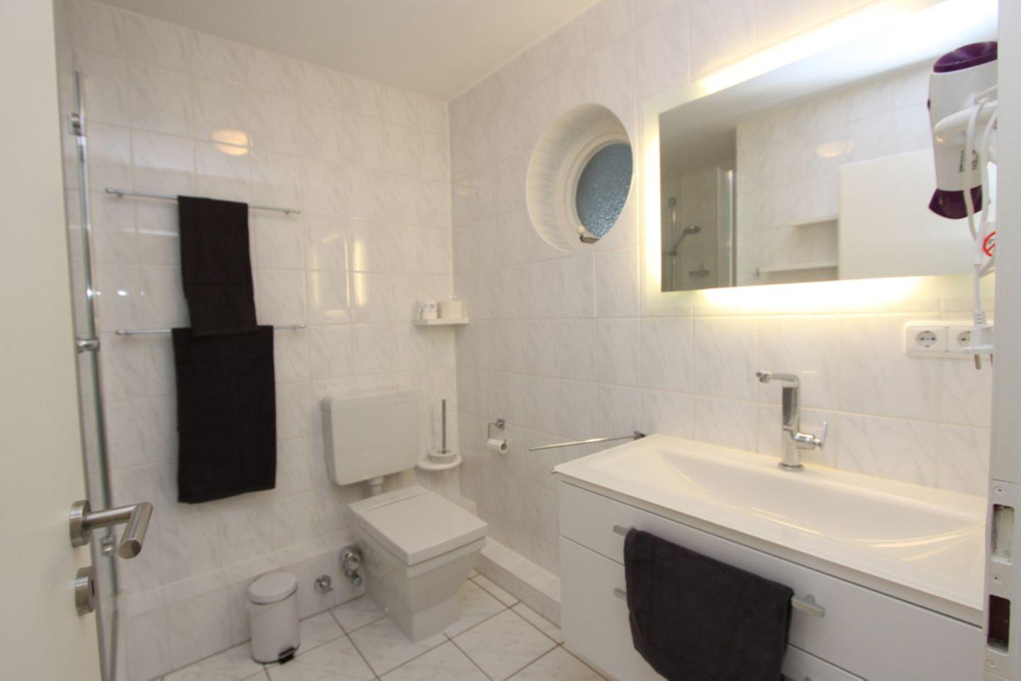 Ein Bad mit Dusche, WC und Waschtisch mit beleuchteten Spiegel komplettieren dieses Angebot.