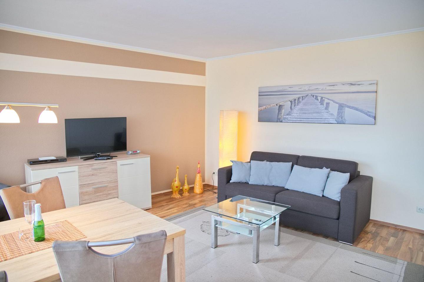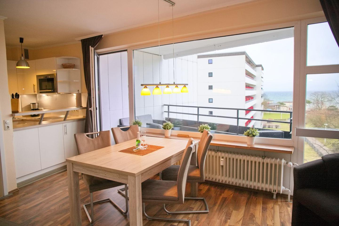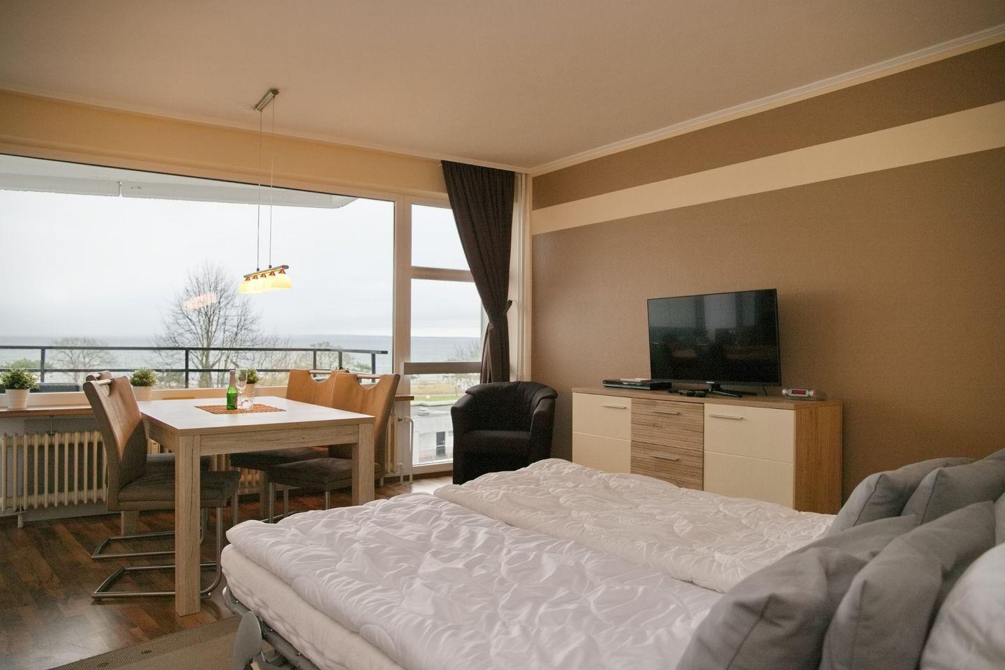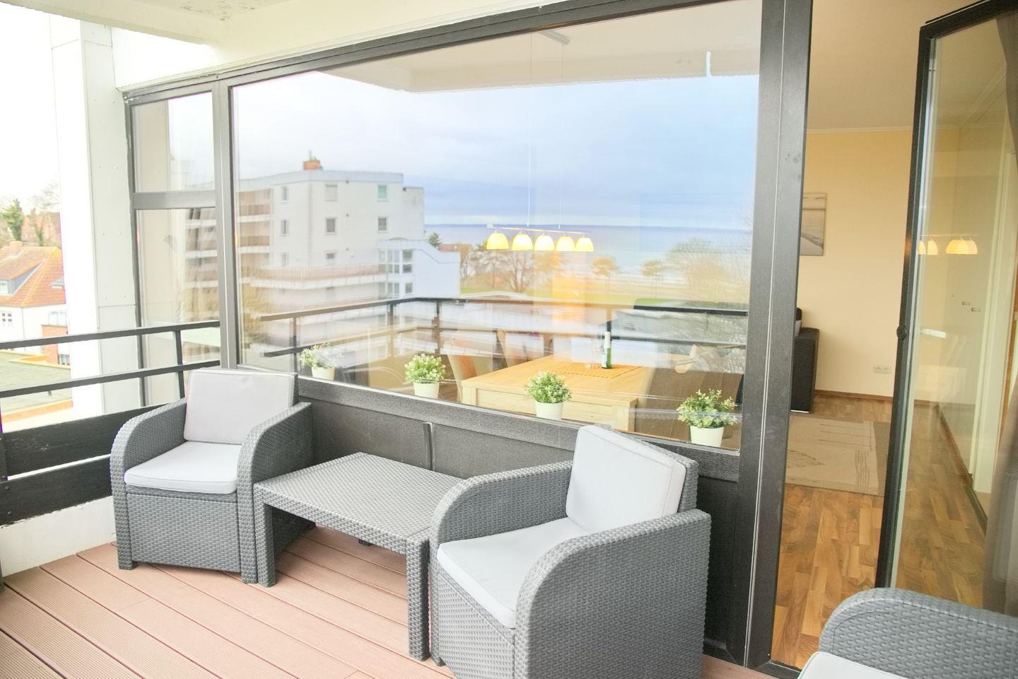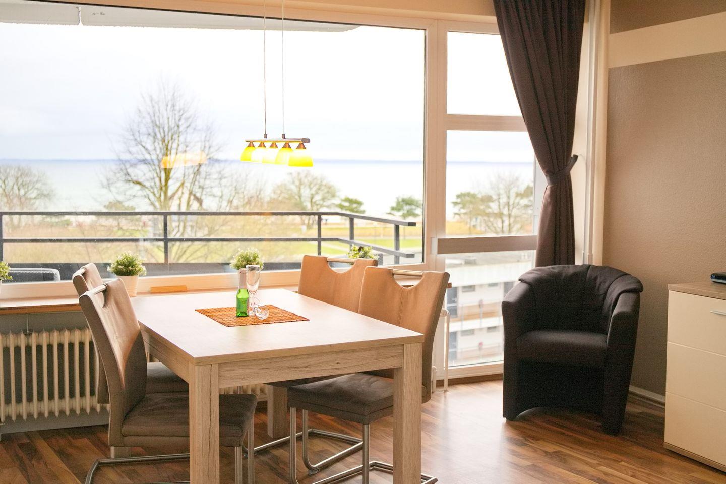 sehr schöne 2 Zimmer Ferienwohnung mit möblierten Balkon und 100 % Seeblick direkt an der Promenade. Nur 300 Meter von der Seebrücke entfernt.