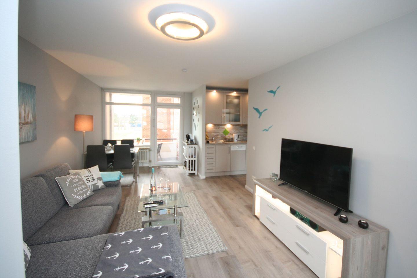 Diese hell gestaltete 2 Zimmer Ferienwohnung mit einer Größe von ca. 55m² verteilt sich auf 2 Zimmer mit Küche und Bad.