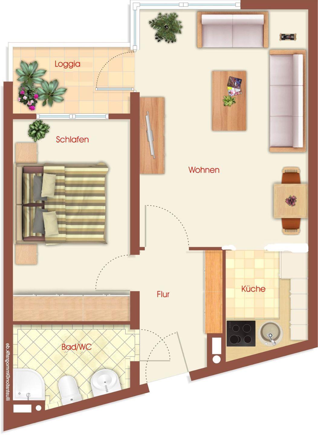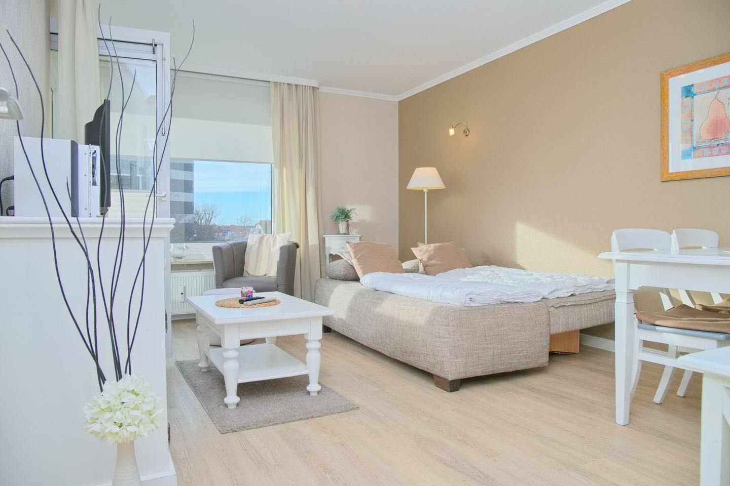 Diese ca. 48 m² große 2 Zimmer Ferienwohnung befindet sich in der 2. Etage des Hauses "Hanseat II".