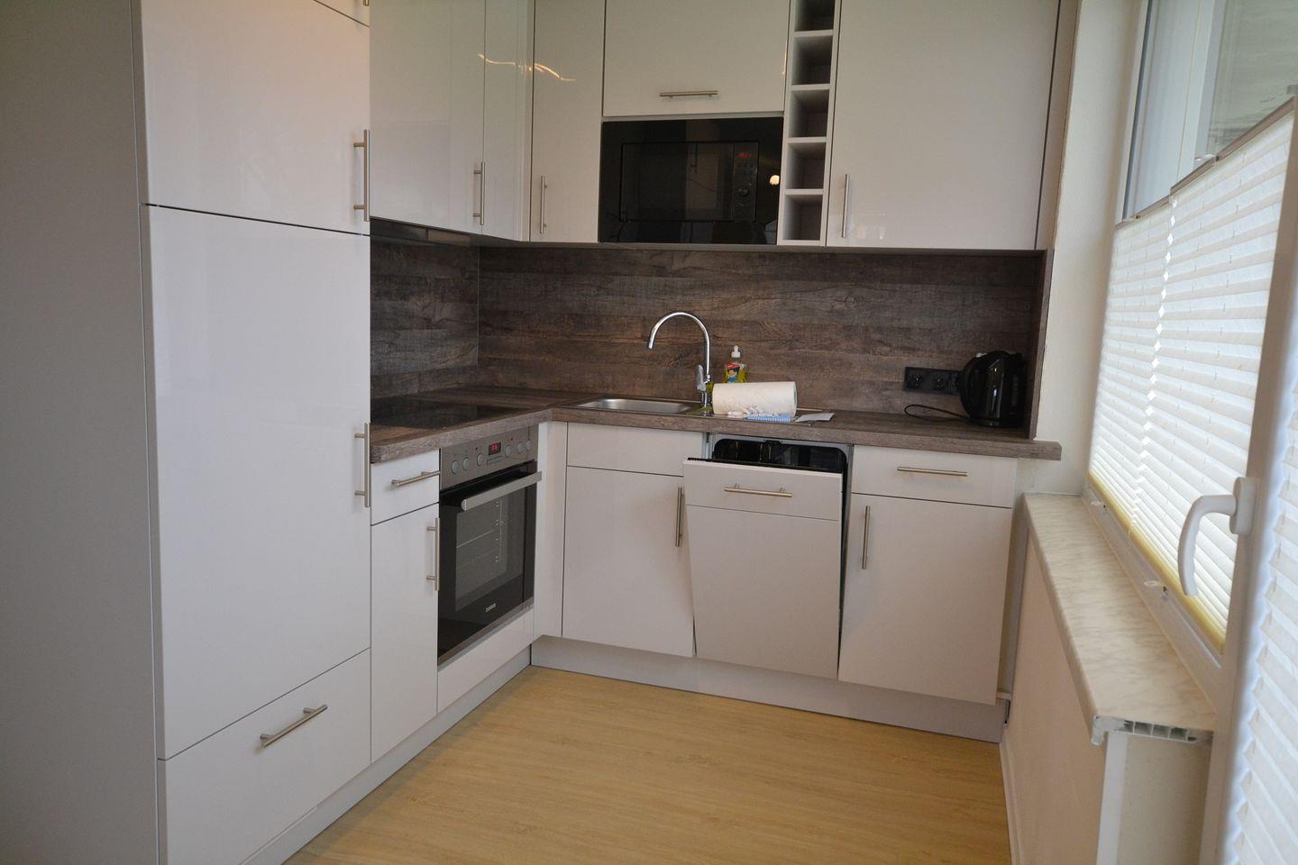 Die Wohnung verfügt über vier Schlafzimmer – eines mit einem Doppelbett, ein weiteres mit einem Doppel-Boxspringbett, ein Schlafzimmer mit zwei Einzelbetten und ein Schlafzimmer mit einem Einzelbett mit Ausziehfunktion (nur für Kinder geeignet). Zudem gibt es ein helles Badezimmer mit Dusche, eine moderne, gut ausgestattete Küchenzeile und einen gemütlichen Wohn-/ Essbereich. Auf Wunsch stellen wir Ihnen gerne kostenfrei ein Kinderbett und einen Hochstuhl zur Verfügung.