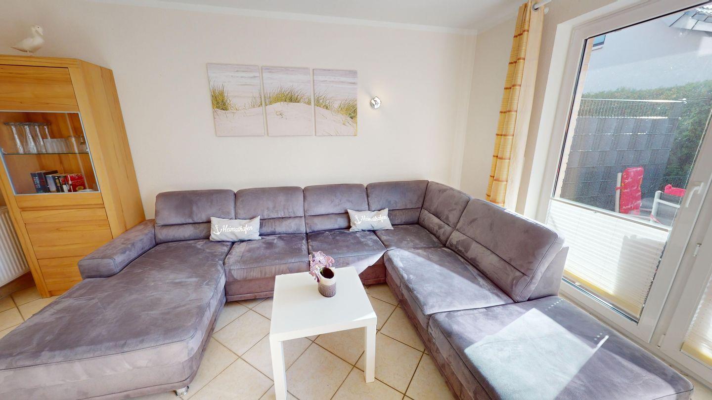 Das Haus verfügt über drei separate Schlafzimmer mit Doppelbett, zwei Duschbäder, ein separates Gäste-WC sowie eine gut ausgestattete Küchenzeile. Im hellen und modernen Wohnzimmer mit bequemer Couchgarnitur werden Sie entspannte Stunden verbringen. Alle Räume besitzen Außenjalousien. Es gibt einen Waschtrockner.