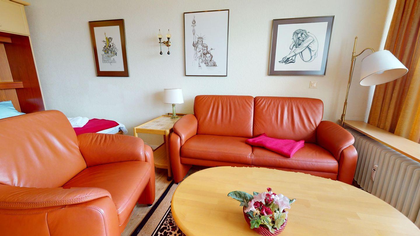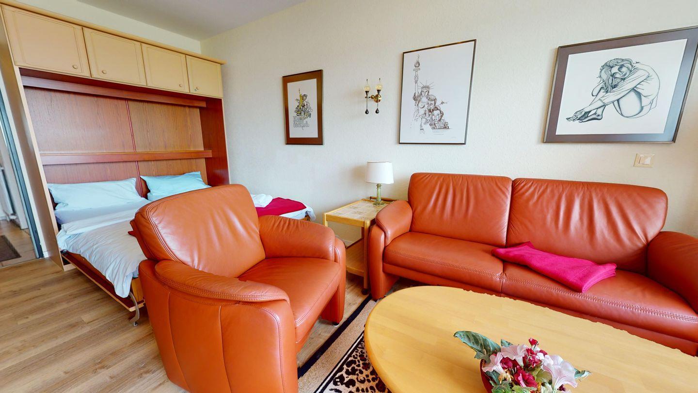 Die Wohnung bietet Platz für zwei Personen, mit einem geschickt integrierten Schrankbett im kombinierten Wohn- und Schlafbereich, das für hohen Komfort sorgt. Eine moderne Küchenzeile und ein stilvolles Duschbad machen den Rückzugsort perfekt für erholsame Tage am Meer.