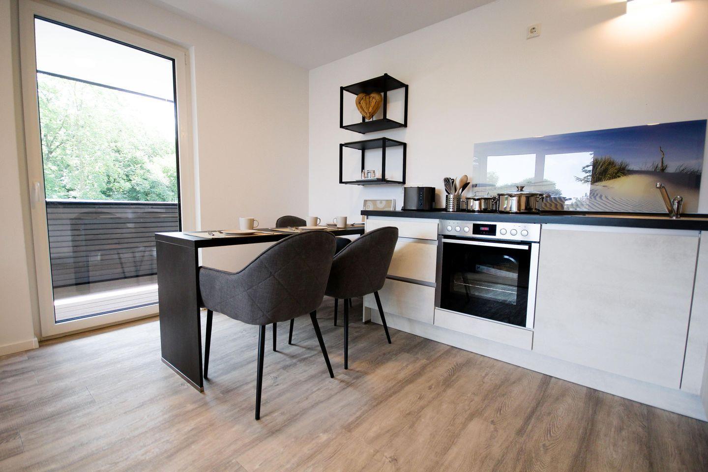 Helle und modern eingerichtete 3-Zimmer-Wohnung auf 57?m² für bis zu 3 Personen – mit zwei Schlafzimmern, offenem Wohn-Essbereich, voll ausgestatteter Küchenzeile und einem besonderen Highlight: Von allen Räumen gelangen Sie direkt auf den möblierten Balkon. Ideal für eine entspannte Auszeit mit Komfort und frischer Luft!