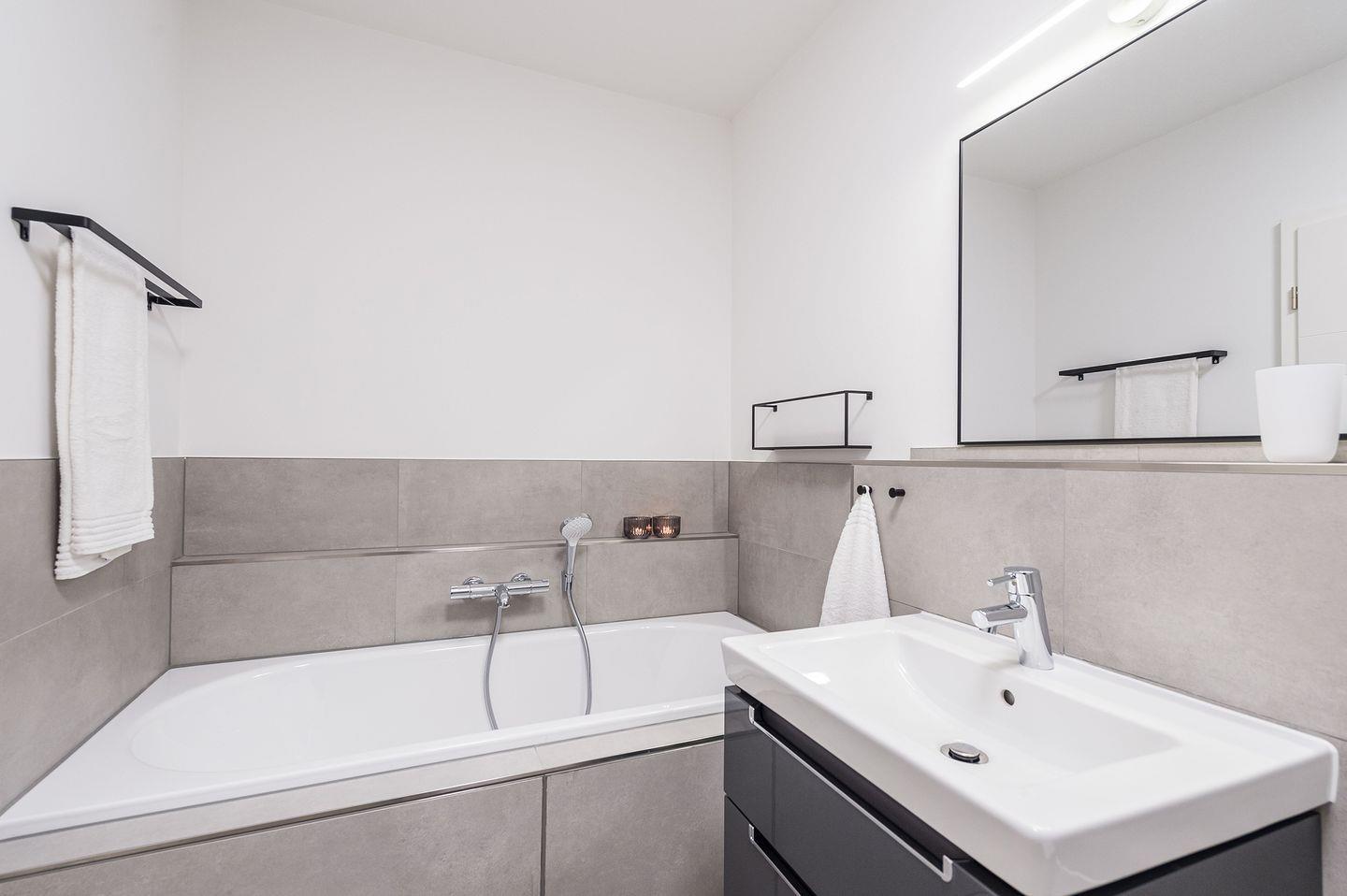 Sie ist für bis zu 2 Personen buchbar (1 Schlafzimmer mit Doppelbett 180 x 200 cm) und verfügt über eine gehobene 5-Sterne-Ausstattung: 2 Badezimmer, 1