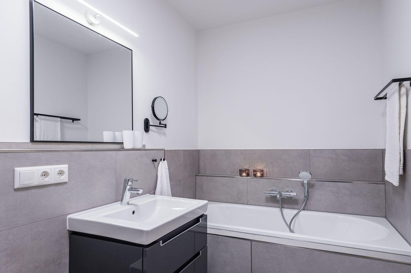 Sie ist für bis zu 2 Personen buchbar (1 Schlafzimmer mit Doppelbett 180 x 200 cm) und verfügt über eine gehobene 5-Sterne-Ausstattung: 1 Badezimmer, 1