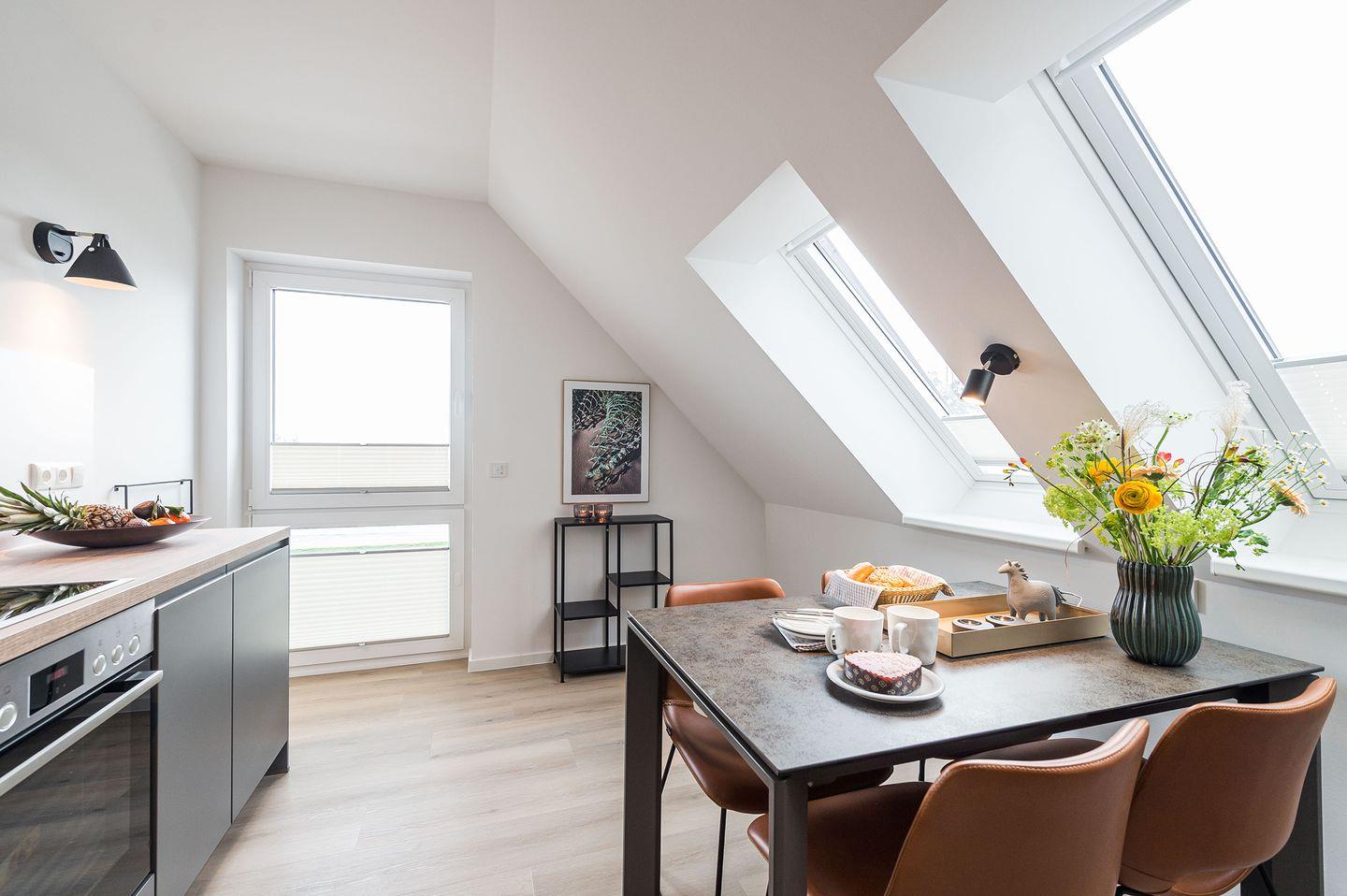 Die 54 m² große Dachgeschoss-Wohnung Peter´s Lodge ? 9 steht nach der Fertigstellung erstmals zur Vermietung zur Verfügung. Die moderne 5 Sterne Wohnung ist nur wenige Meter vom Strand und der Ostsee entfernt (100 m Luftlinie).