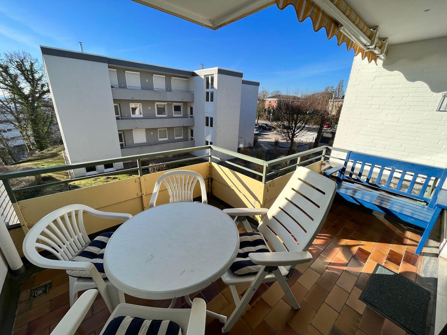 Der Balkon bietet ebenfalls genug Platz für die ganze Familie.
