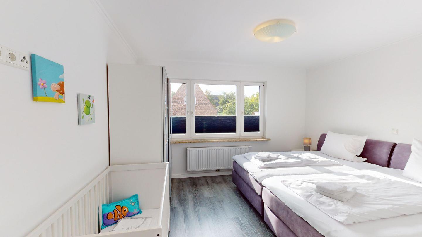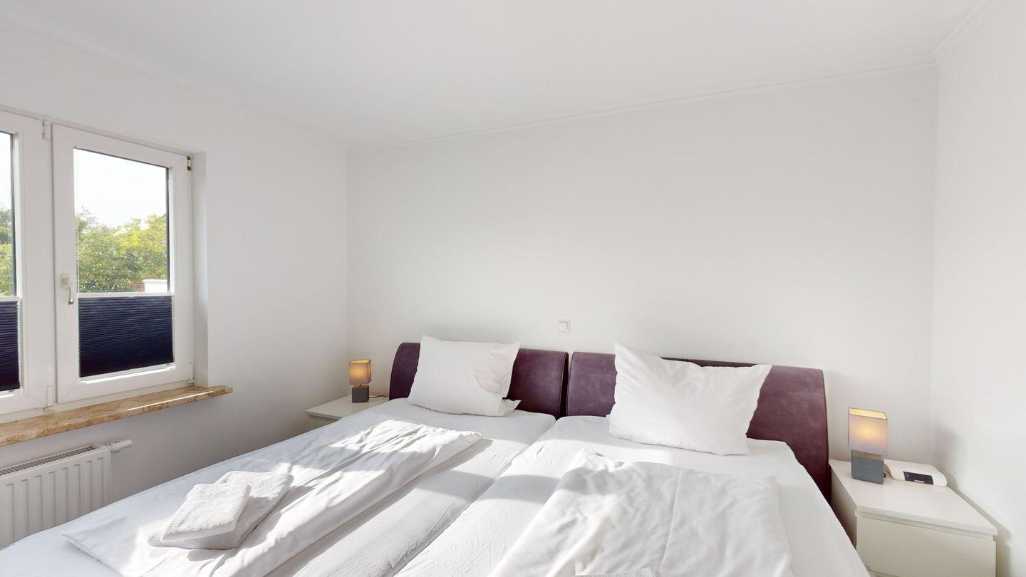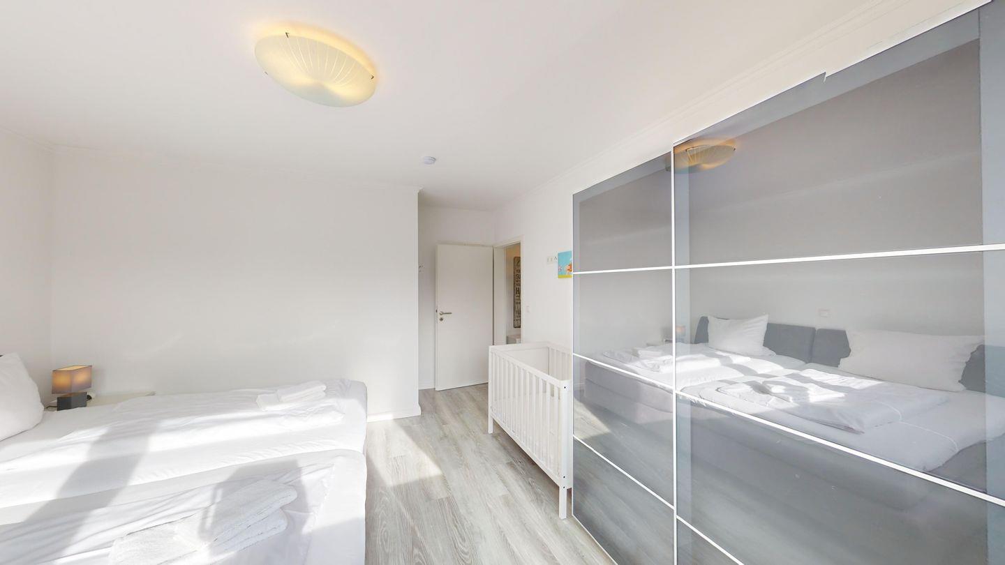 4 Personen finden hier ausreichend Platz - Zwei gemütliche Schlafzimmer mit Boxspringbetten und Kleiderschränken, ein schönes Bad mit (Regen-)Dusche sowie eine moderne Küchenzeile warten auf Sie. Ein Holz-Babybett (60 x 120 cm) ist in einem der Schlafzimmer vorhanden.