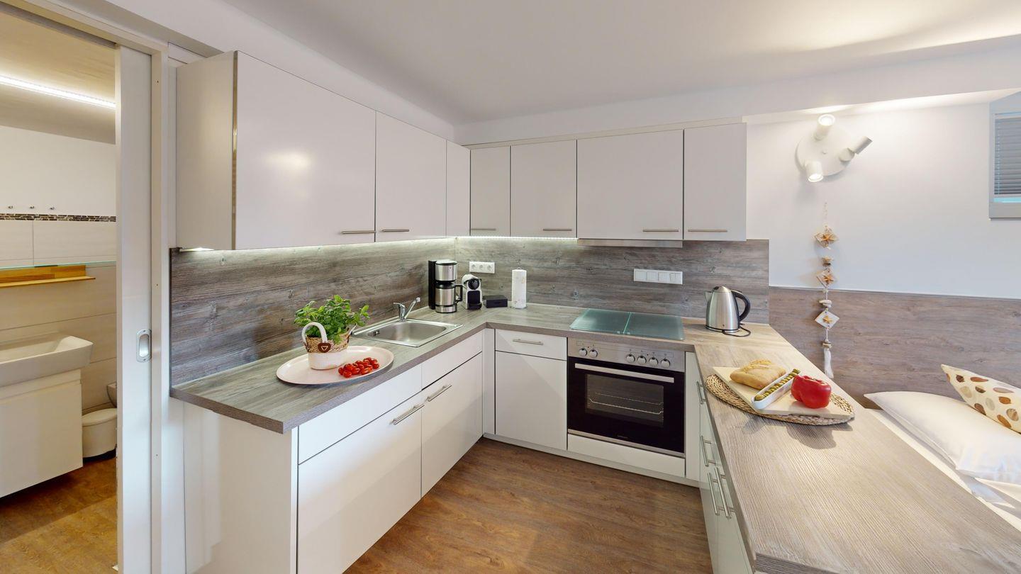 Die Ferienwohnung liegt im Erdgeschoss und bietet mit einer komfortablen Schlafcouch, einer voll eingerichteten Küche sowie einem Duschbad und einem begehbaren Kleiderschrank den Komfort, den man im Urlaub sucht. Ein Babybett kann zusätzlich bereitgestellt werden.