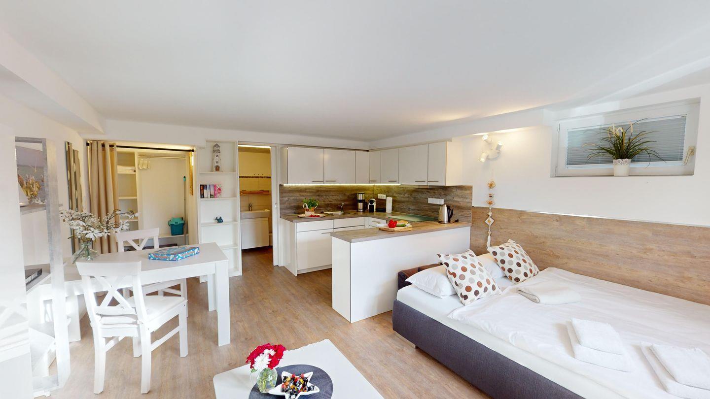 Die kleine, gemütliche Ferienwohnung "Boje" in der Villa Klarsinni II ist ideal für einen Kurzurlaub oder auch einen längeren Aufenthalt zu zweit.