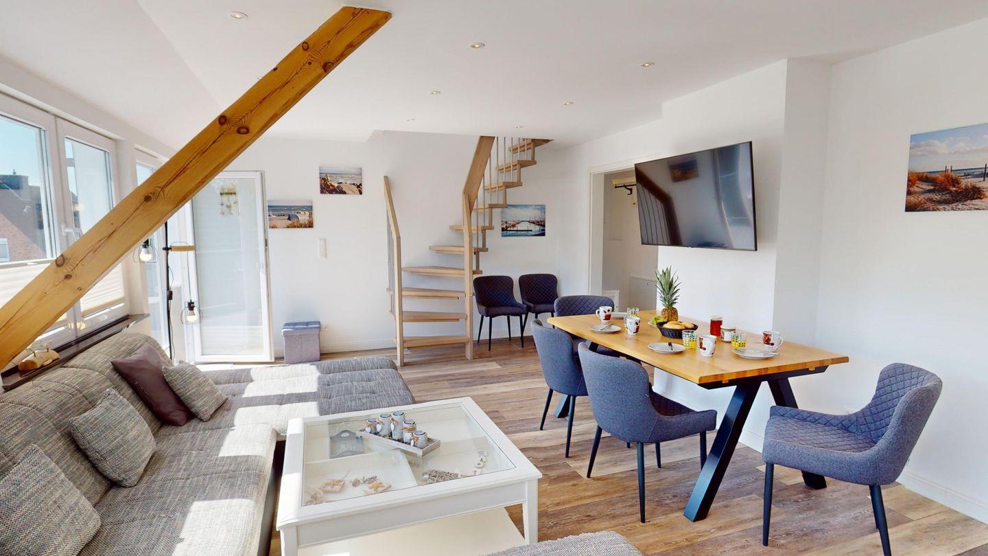 Die herrliche Luxus-Ferienwohnung "Krabbe" hat zwei Ebenen (1. Obergeschoss/Dachgeschoss) und liegt in der Villa Klarsinni II in Grömitz.
