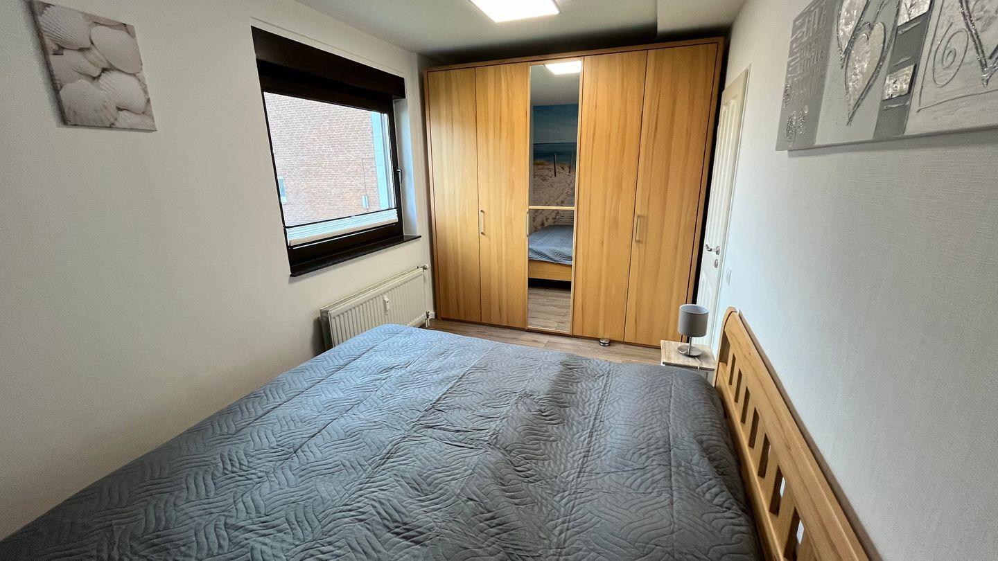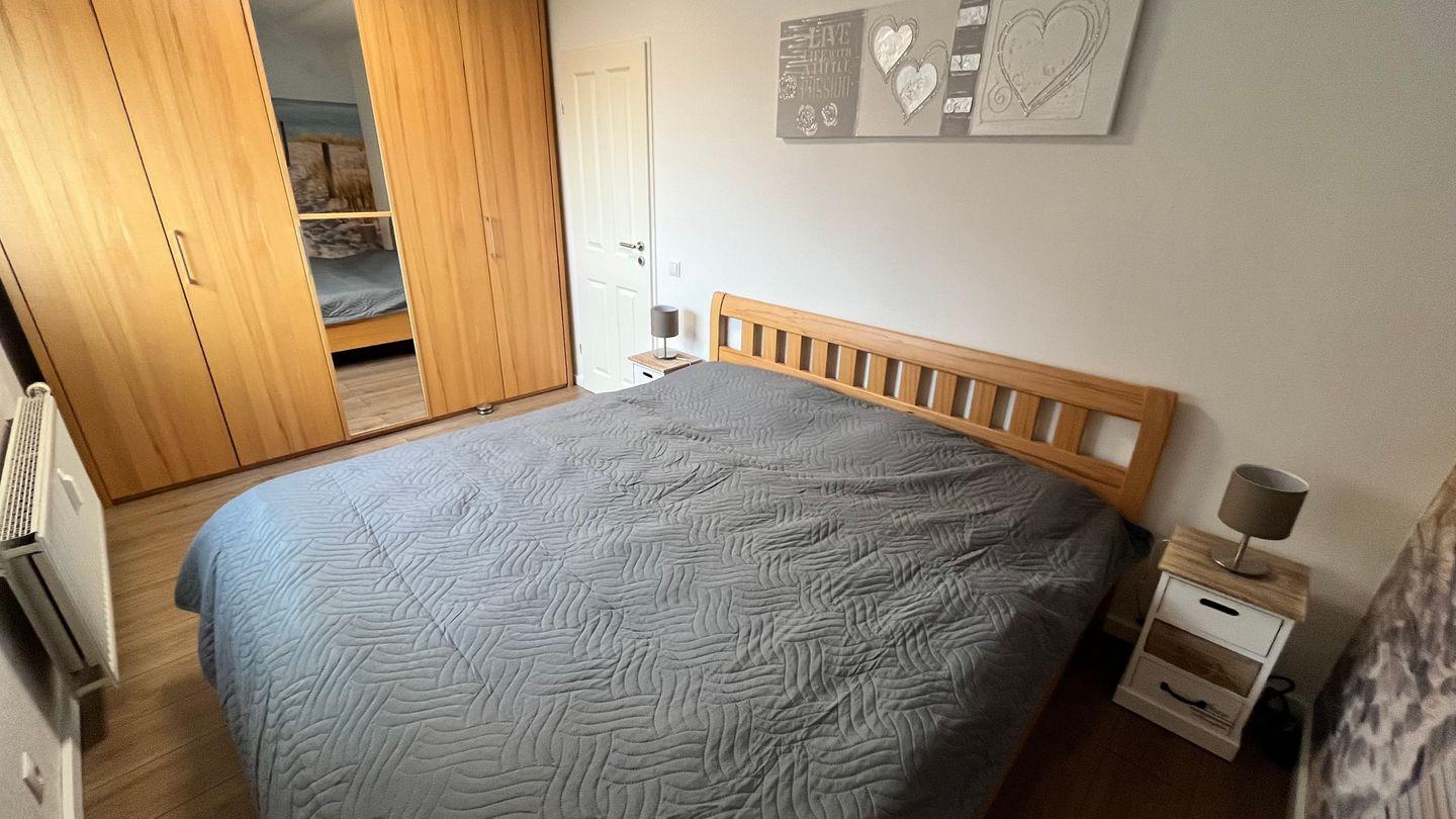 Im Schlafzimmer finden Sie ein Doppelbett und einen geräumigen Kleiderschrank. Dort finden auch Ihre Koffer genügend Platz für Ihren Aufenthalt.
