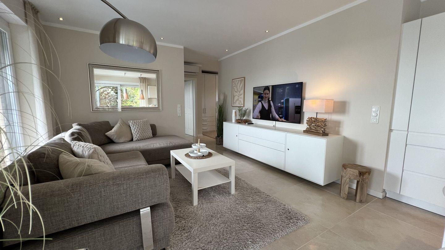 Die sehr komfortabel (Klimaanlagen, Fußbodenheizung, Sauna, elektr. Fenster-Jalousien) und modern eingerichtete Wohnung befindet sich ganz oben im 2. Obergeschoss und ist bequem mit dem Fahrstuhl zu erreichen.