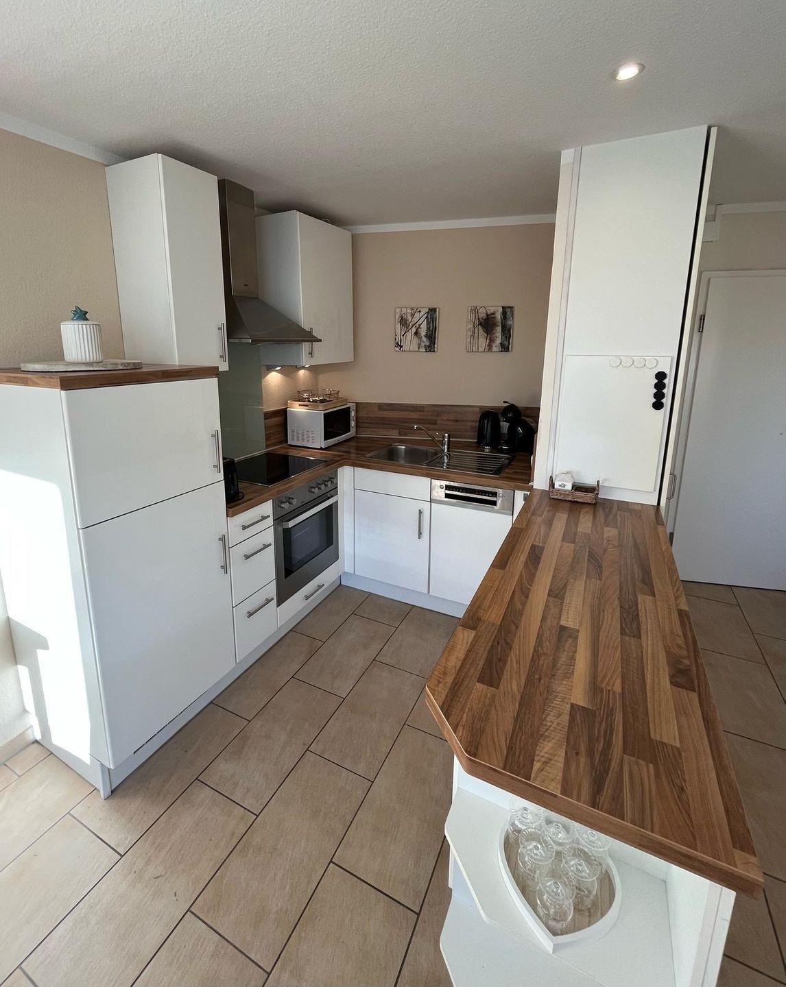 Die offen gestaltete Küche verfügt über alles notwendige für einen gelungen Urlaub, inklusive Dolce Gusto Kapselmaschine, Spülmaschine und Mikrowelle.