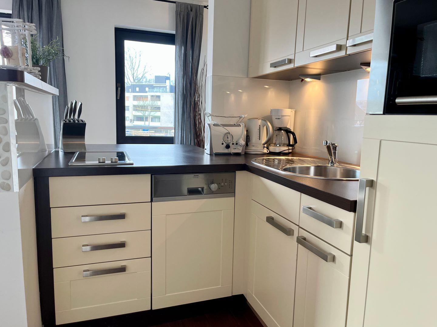 Die gemütliche 2-Zimmer-Wohnung im 1. Stock bietet auf 40 m² Platz für 2 Personen. Der Wohnbereich ist mit einer komfortablen Sitzecke ausgestattet und verfügt über eine offene Küchenzeile mit Tresen sowie ein 2-Platten-Ceranfeld. Das separate Schlafzimmer sorgt für erholsame Nächte. Das moderne Bad ist mit einer Dusche ausgestattet. Auf dem möblierten Balkon können Sie entspannen und die frische Ostseeluft genießen.