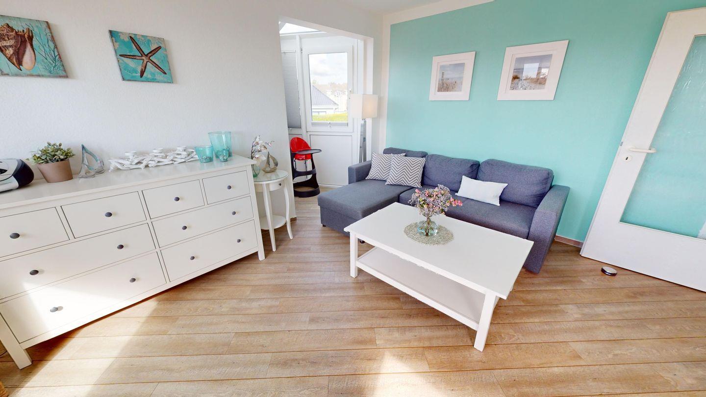 Der lichtdurchflutete Wohnbereich mit offener Küchenzeile, Essbereich und gemütlichem Sofa lädt zum Verweilen ein. Die Couch kann zu einer Schlafcouch für zwei Personen umfunktioniert werden. Die Wohnung verfügt über ein separates Schlafzimmer mit einem Doppelbett und ein schönes Duschbad mit WC.