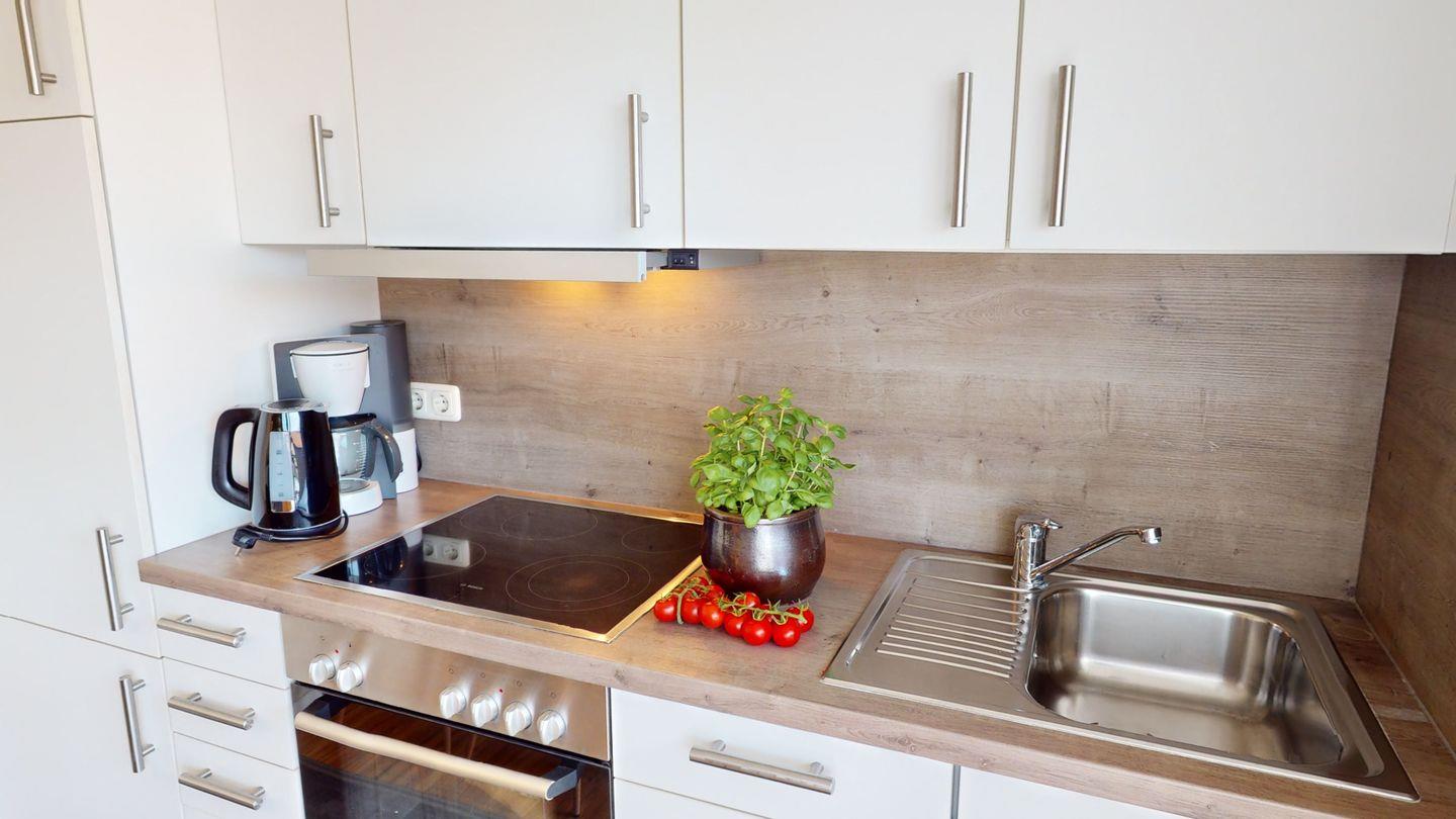 Die Wohnung bietet einen offenen, gemütlichen Wohn-/ Essbereich mit einer modernen Küchenzeile. Im gemütlichen Wohnzimmer mit Flachbild-TV und Blu-Ray Player können Sie entspannte Stunden verbringen. An die Küche angrenzend liegt der Balkon. Diese Wohnung verfügt über ein Schlafzimmer mit einem Doppelbett und ein modernes Duschbad mit WC.