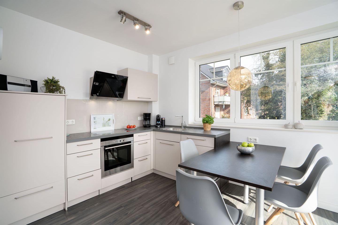 Die moderne Küche lässt keine Wünsche offen: Mit einer Spülmaschine, einem Herd, einem Kühlschrank, einem Wasserkocher und einem Toaster steht Ihnen alles zur Verfügung, um Ihre Lieblingsgerichte bequem zuzubereiten.