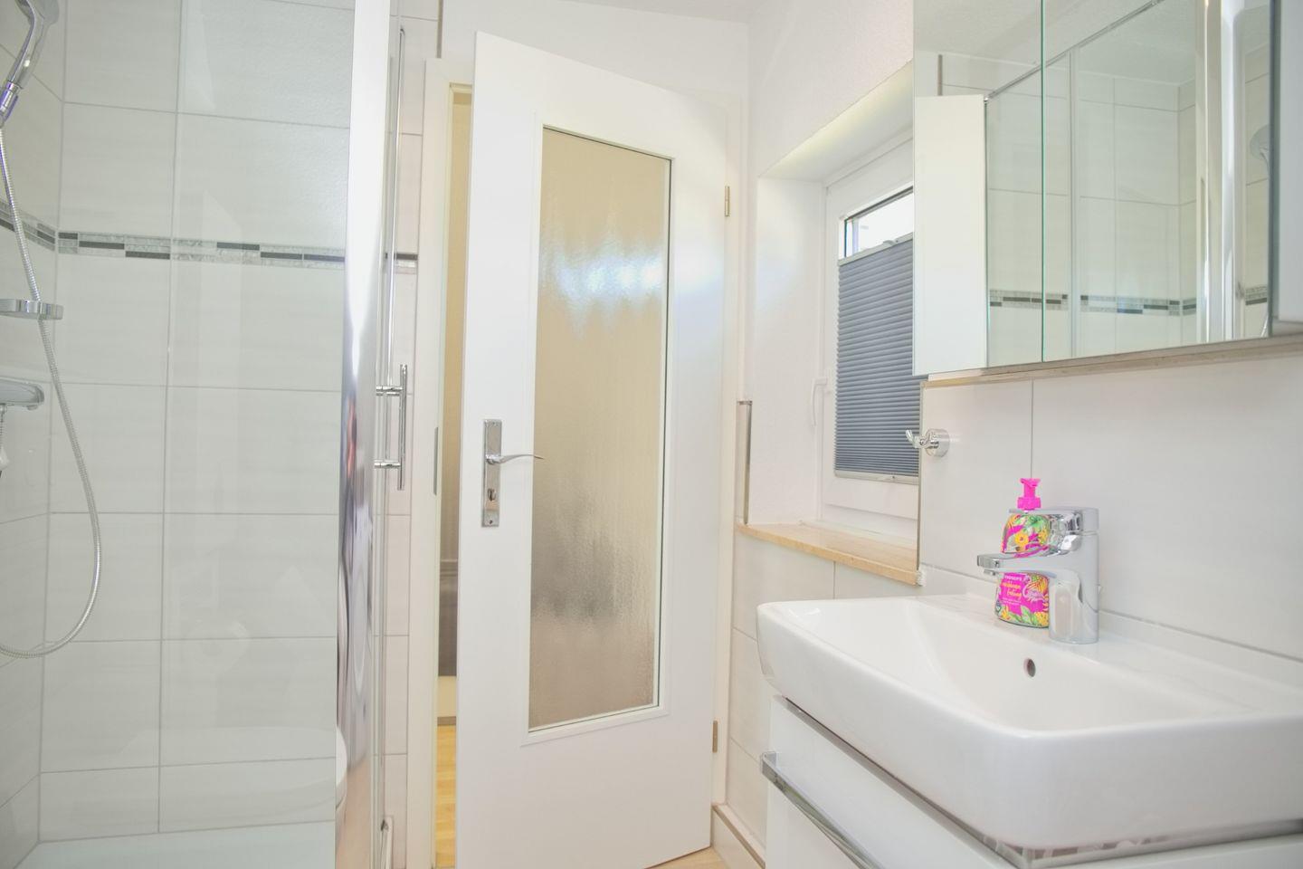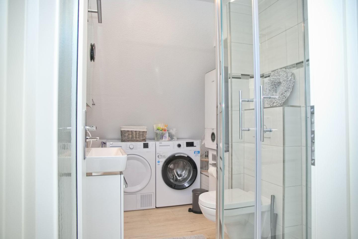 Zwei Badezimmer, die über Duschen, Waschbecken und WCs verfügen, bieten zusätzlichen Komfort im Urlaub. Für Ihre Wäsche stehen eine Waschmaschine, ein Trockner sowie ein Wäscheständer bereit, sodass Sie alles Notwendige in der Unterkunft selbst erledigen können.