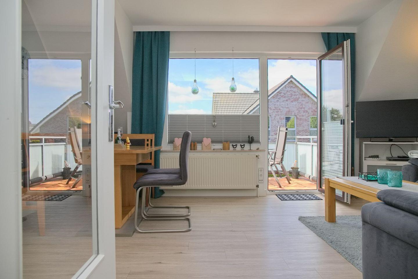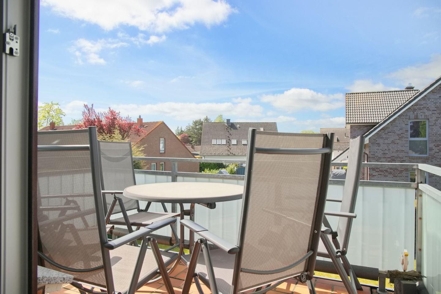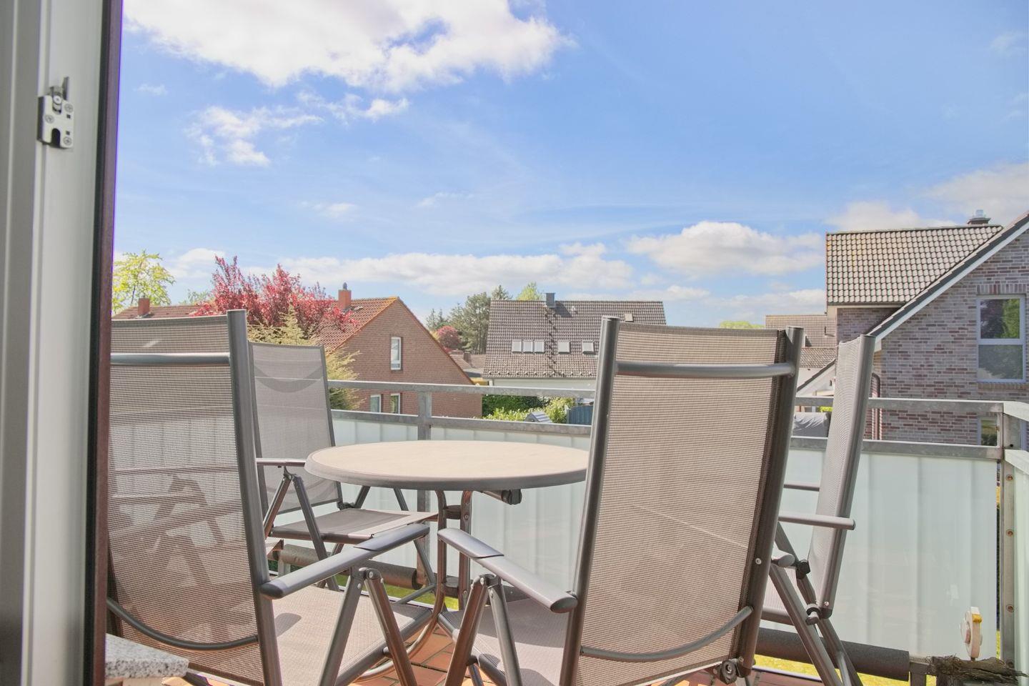 Ein besonderes Highlight der Unterkunft ist der Balkon, den Sie vom Wohnzimmer betreten können. Ausgestattet mit Gartenmöbeln, bietet er einen perfekten Ort, um die frische Luft und die Ruhe der Umgebung zu genießen.