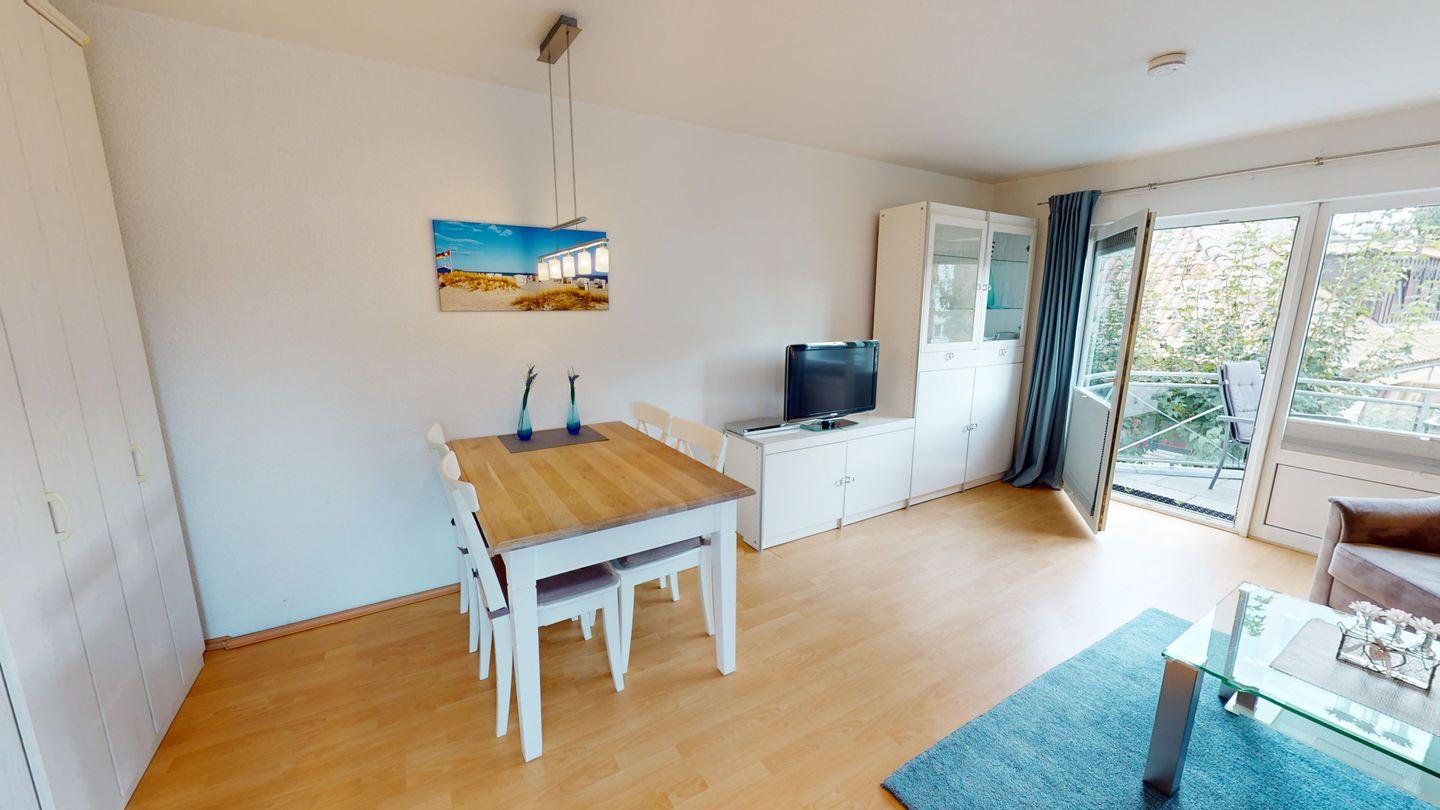 Über den Wohnbereich gelangen Sie auf den möblierten Süd-Ost-Balkon – genießen Sie Ihr Frühstück oder die Abendstunden an der frischen Ostseeluft!