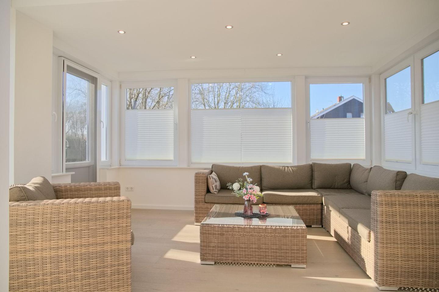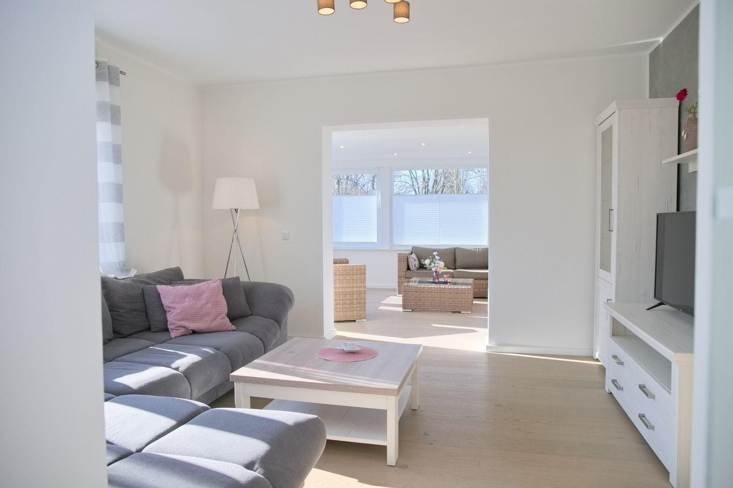 Die vollständig renovierte Ferienwohnung verfügt über zwei separate Schlafzimmer, ein modernes Badezimmer mit Fußbodenheizung sowie helle, freundliche Wohnräume. In den Schlafräumen, im Wohnzimmer und im Wintergarten sorgt Echtholz-Parkett für ein angenehmes Wohngefühl. Für zusätzlichen Komfort stehen kostenfreies WLAN, ein TV, ein Geschirrspüler sowie ein PKW-Stellplatz direkt am Haus zur Verfügung. Die Wohnung ist bewusst haustierfrei gehalten und eignet sich ideal für Gäste, die Wert auf Ruhe, Sauberkeit und eine gepflegte Unterkunft legen.