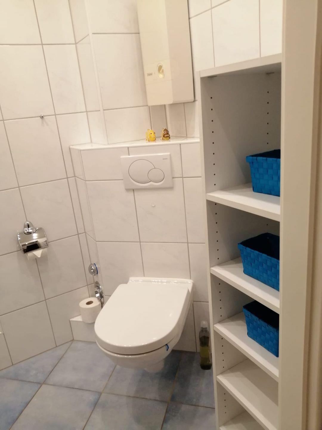 Das moderne Badezimmer überzeugt mit einer Dusche, WC, Waschbecken, Spiegelschrank, Föhn und Vergrößerungsspiegel. Die gesamte Wohnung ist mit pflegeleichtem Laminatboden ausgelegt und somit besonders gut für Allergiker geeignet.