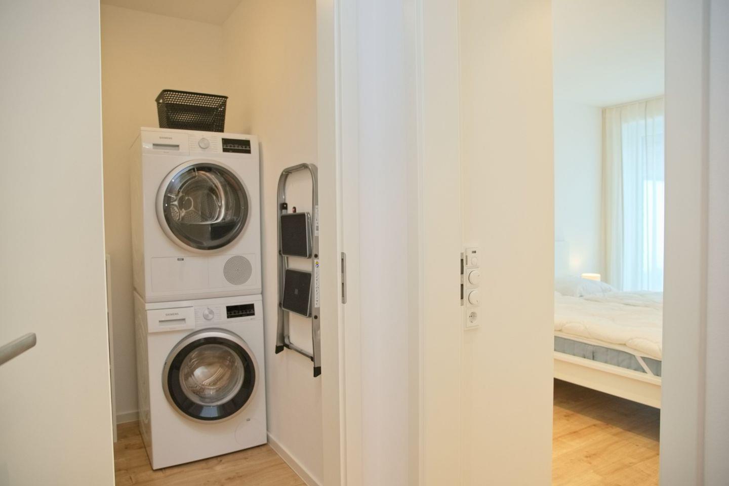 Die Nichtraucherwohnung ist besonders gepflegt und eignet sich optimal für Gäste, die Wert auf Ruhe und Sauberkeit legen. Haustiere sind nicht gestattet. Zu den weiteren Annehmlichkeiten zählen kostenloses WLAN, eine Waschmaschine sowie ein Trockner direkt in der Wohnung, ideal auch für längere Aufenthalte. Am Haus steht ein abschließbarer Fahrradschuppen mit zwei fest zugewiesenen Stellplätzen zur Verfügung.