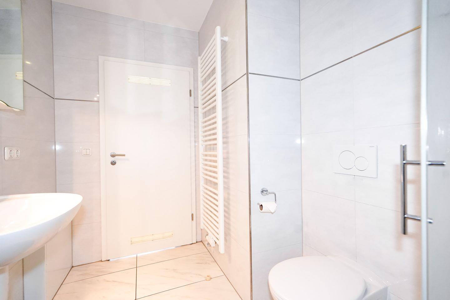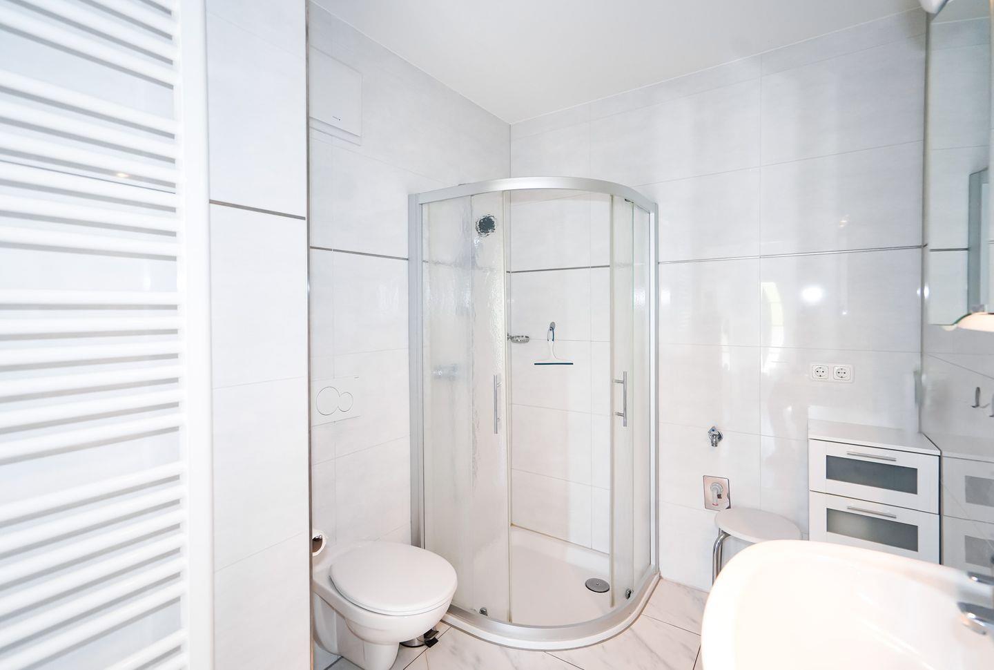 Das wunderschöne Duschbad ist komplett gefliest, wie auch der gesamte Bodenbelag in den Zimmern mit exklusiven Fliesen ausgelegt ist.