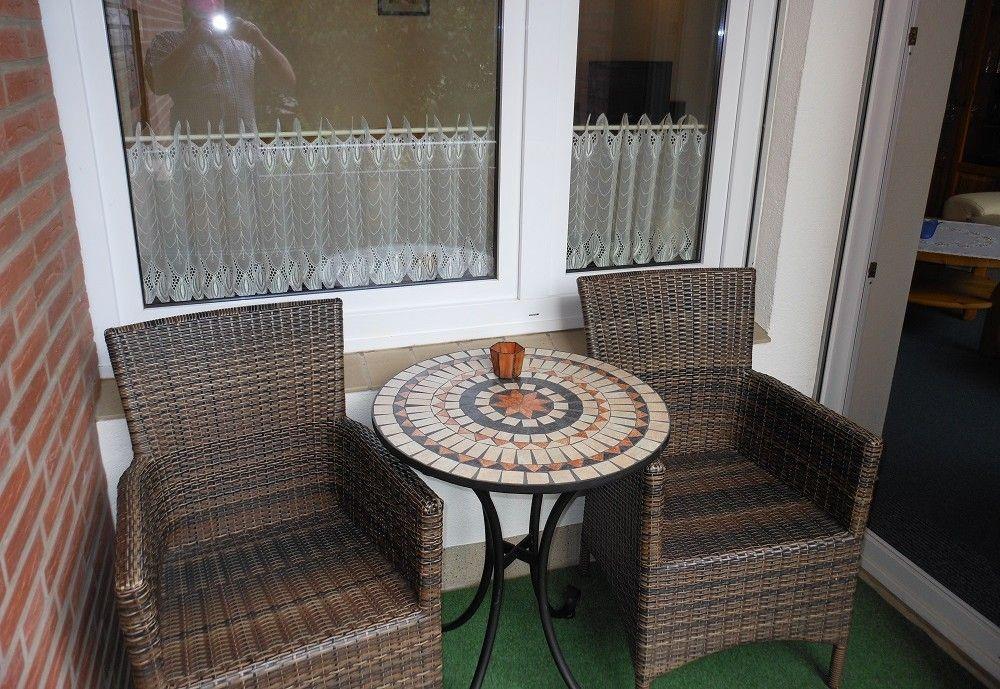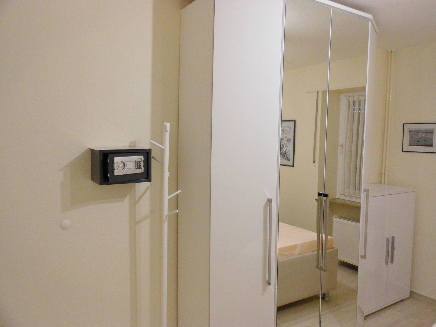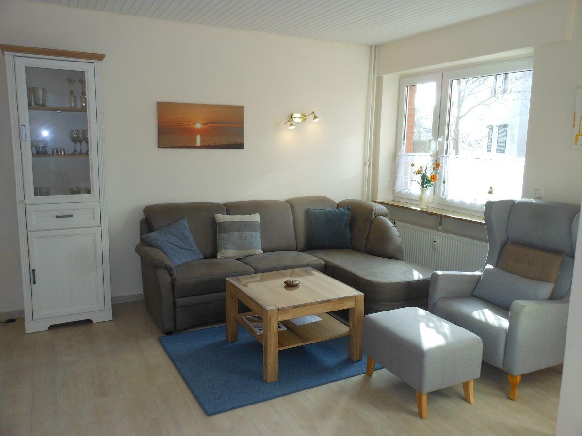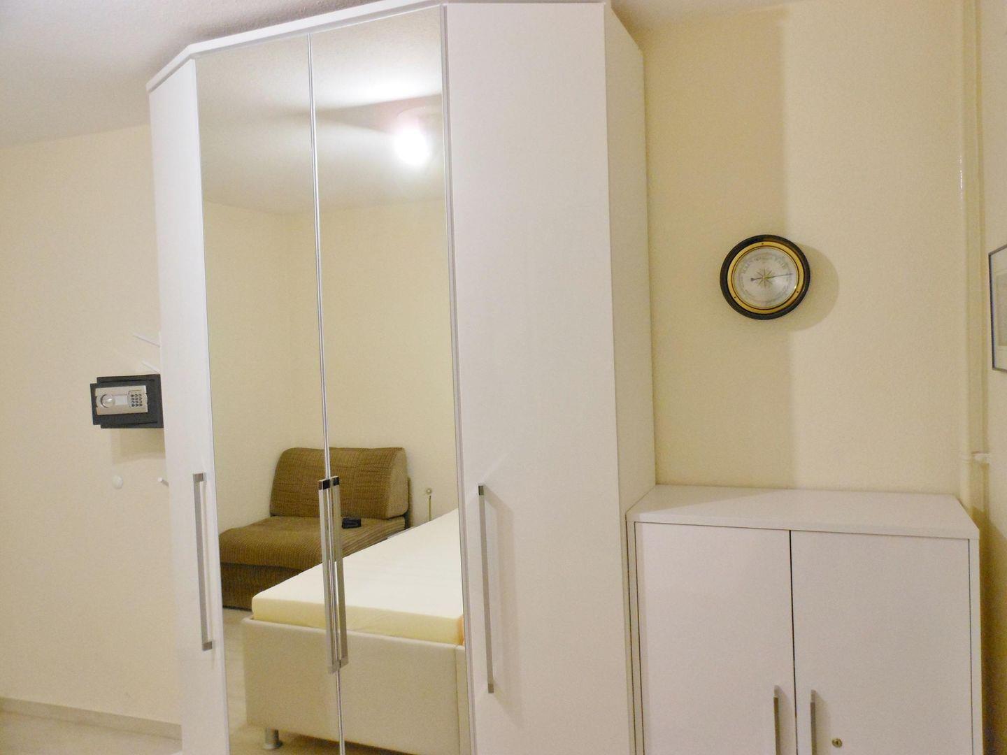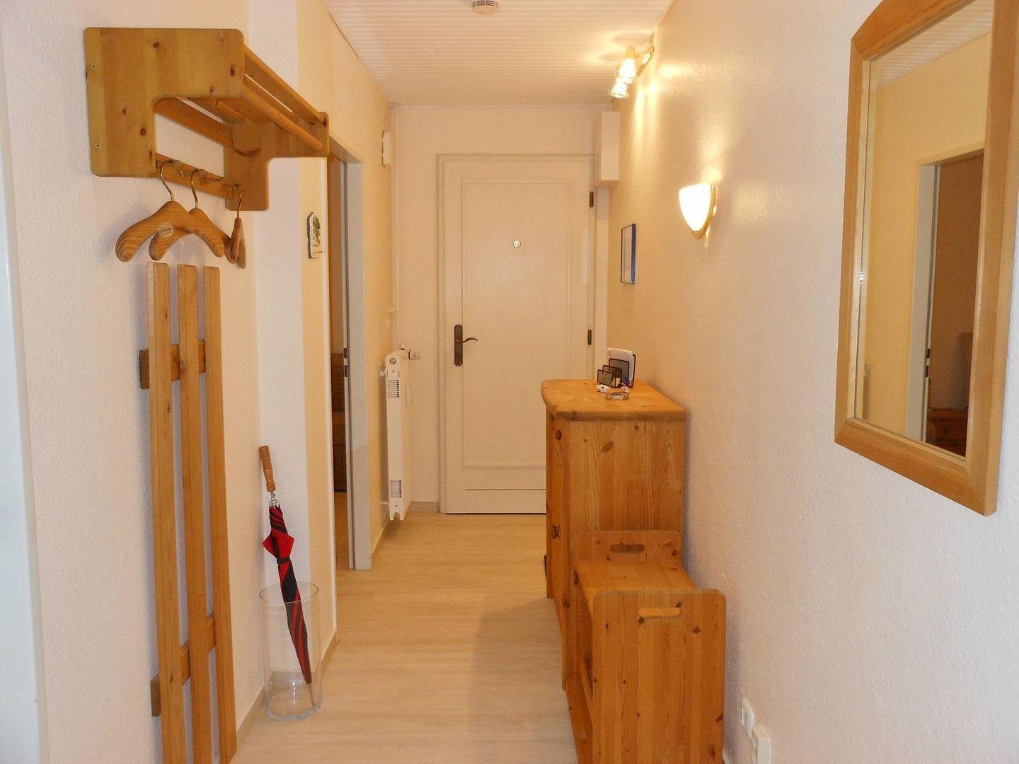 Die Wohnung verfügt über einen Südwestbalkon, ein Schlafzimmer mit Boxspringbett, ein Einzelbett und Kleiderschrank. Im Wohnzimmer befindet sich eine Schlafcouch (120x200m), ein Essplatz für 4 Personen, Flach-TV und Radio. In der Küche befinden sich alle wichtigen Küchengeräte wie z.B. ein neuer Herd, eine Geschirrspülmaschine usw. Das Duschbad ist hell gefliest und mit einer neuen Dusche ausgestattet. Ein Föhn und Schminkspiegel gehören ebenso zur Ausstattung. Alle Fenster haben Außenrollläden.