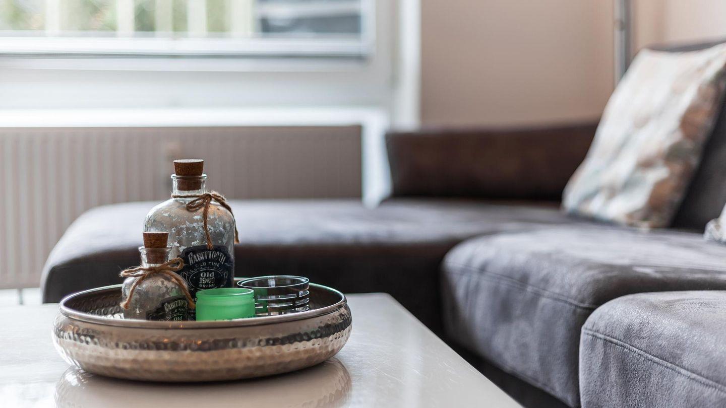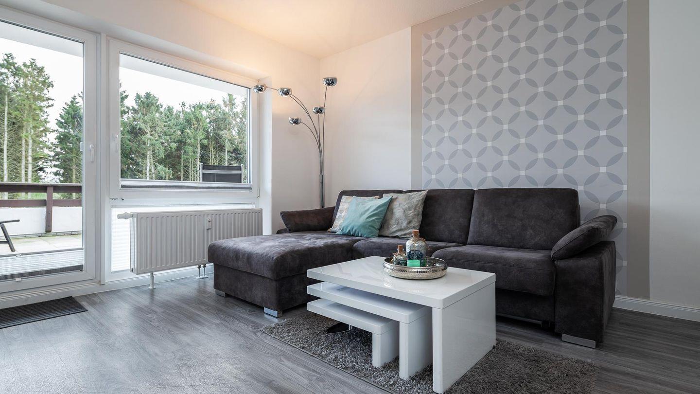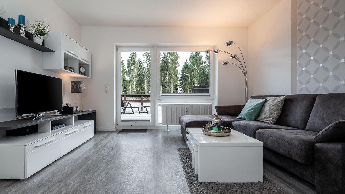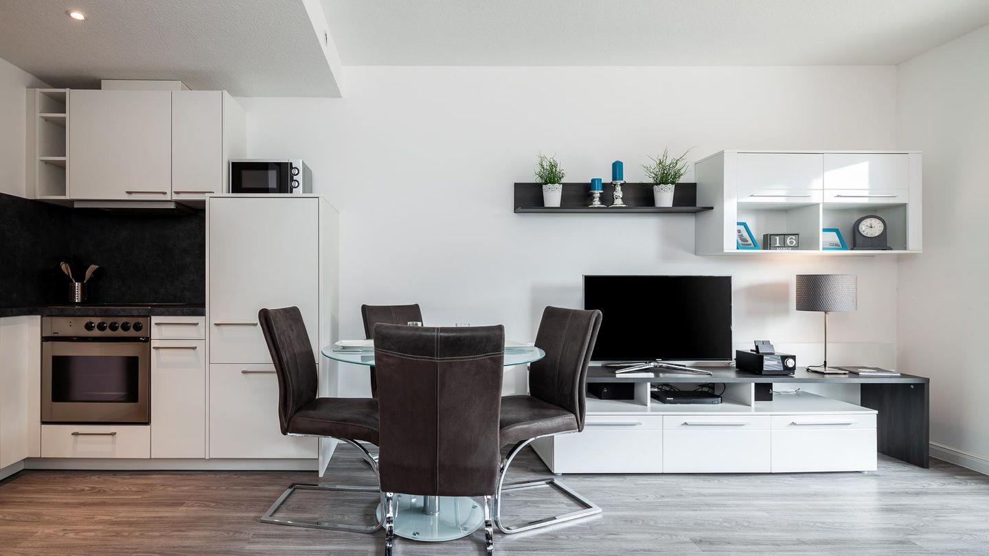 Das hell eingerichtete Wohnzimmer bietet ausreichend Platz für 4 Personen. Ein hochwertiges Schlafsofa lässt Sie wie im eigenem Bett schlafen.