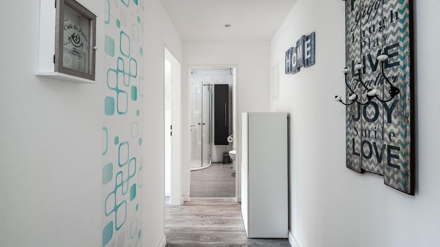 Die gesamte Wohnung ist mit hochwertigem Vinyl-Laminat in Holzoptik ausgelegt.